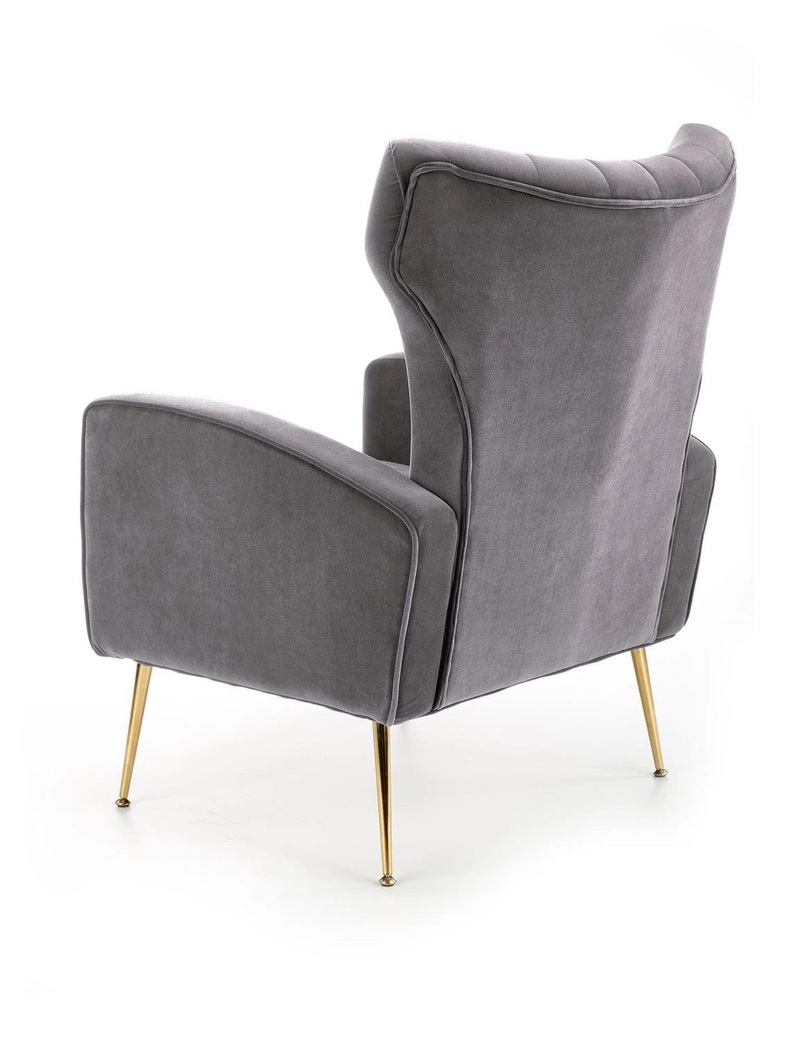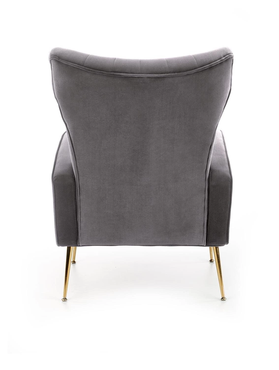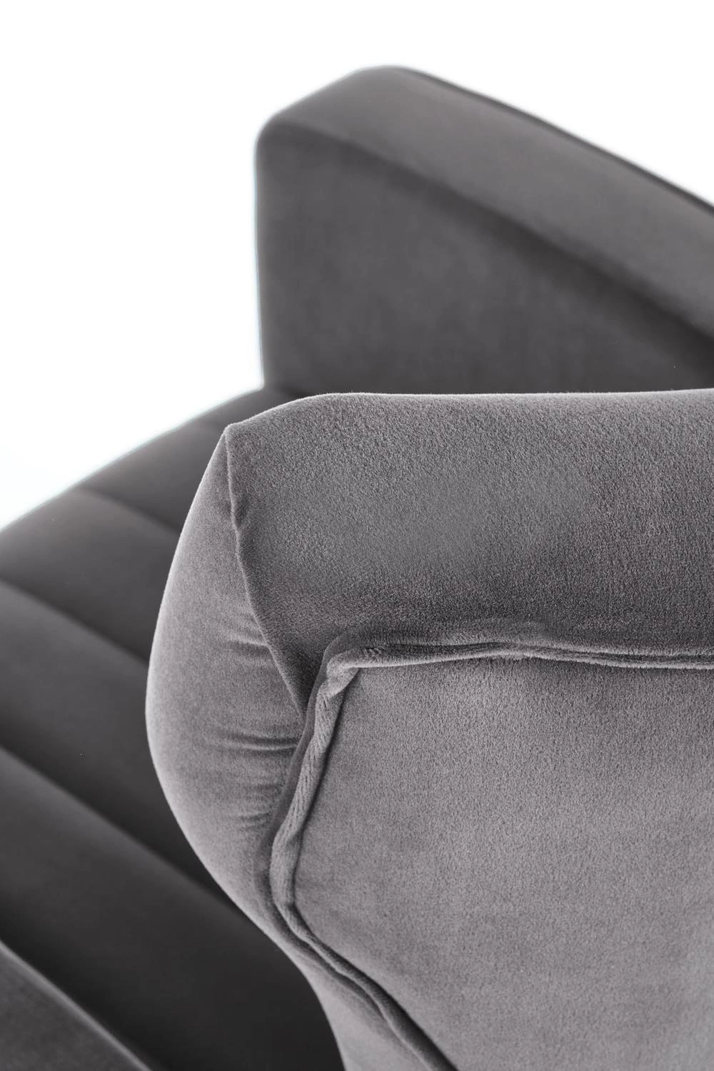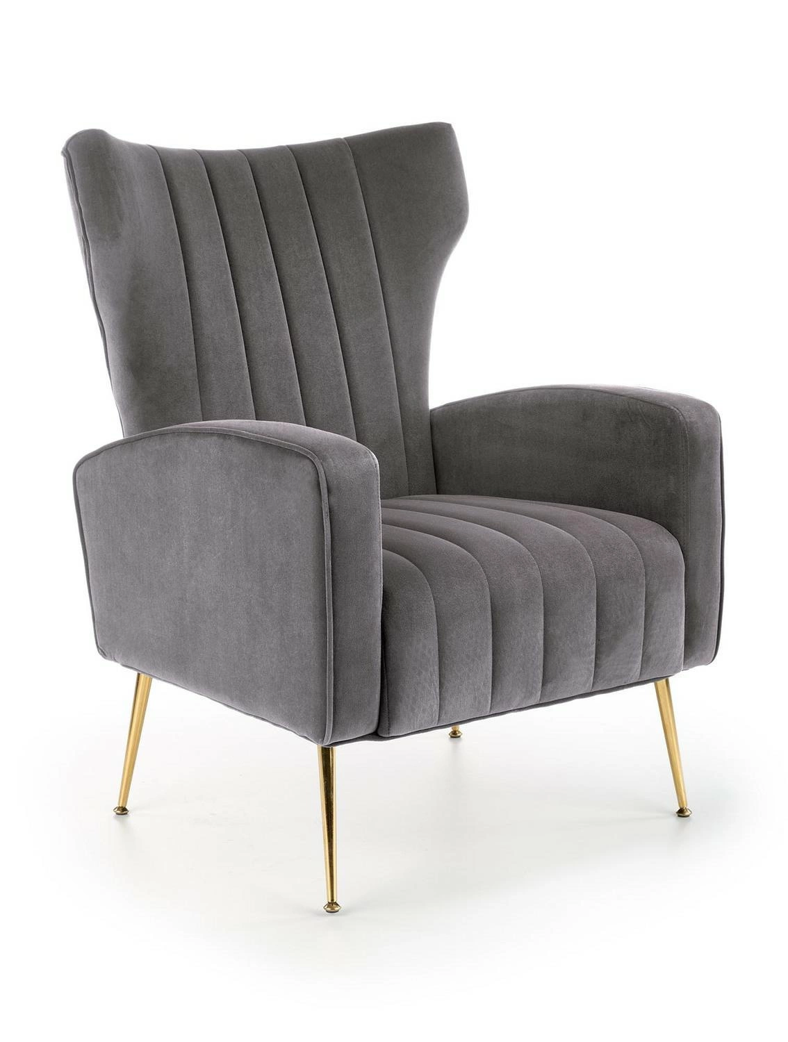 Tmavě šedý samet v kombinaci se zlatou, minimalistickou podstavou vytváří efektní kontrast, který podtrhne charakter moderního obýváku, ložnice či elegantní pracovny. Křeslo Valea nejen zaručuje pohodlí, ale zároveň představuje výrazný dekorativní prvek – hodí se jak do glamour interiérů, tak i do moderně laděných prostor. Štíhlé nohy z nerezové oceli jsou nejen odolné, ale také dodávají celému křeslu lehký vzhled, díky čemuž křeslo nepůsobí robustně ani v menších místnostech.