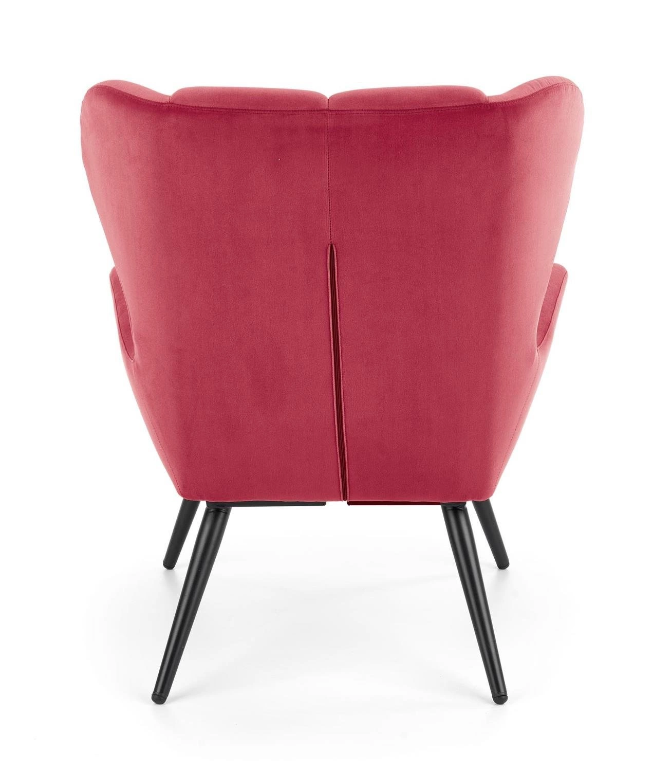 Křeslo ušák Vadis od značky Intesi je spojením vytříbeného glamour stylu s moderním pohodlím. Čalouněné měkkým sametem v hluboké bordó barvě, stojí na pevných černých nohách z oceli. Výška křesla je 91 cm, šířka 75 cm a hloubka 86 cm – tyto proporce zaručují pohodlnou oporu celého těla během relaxace v obývacím pokoji nebo ložnici.