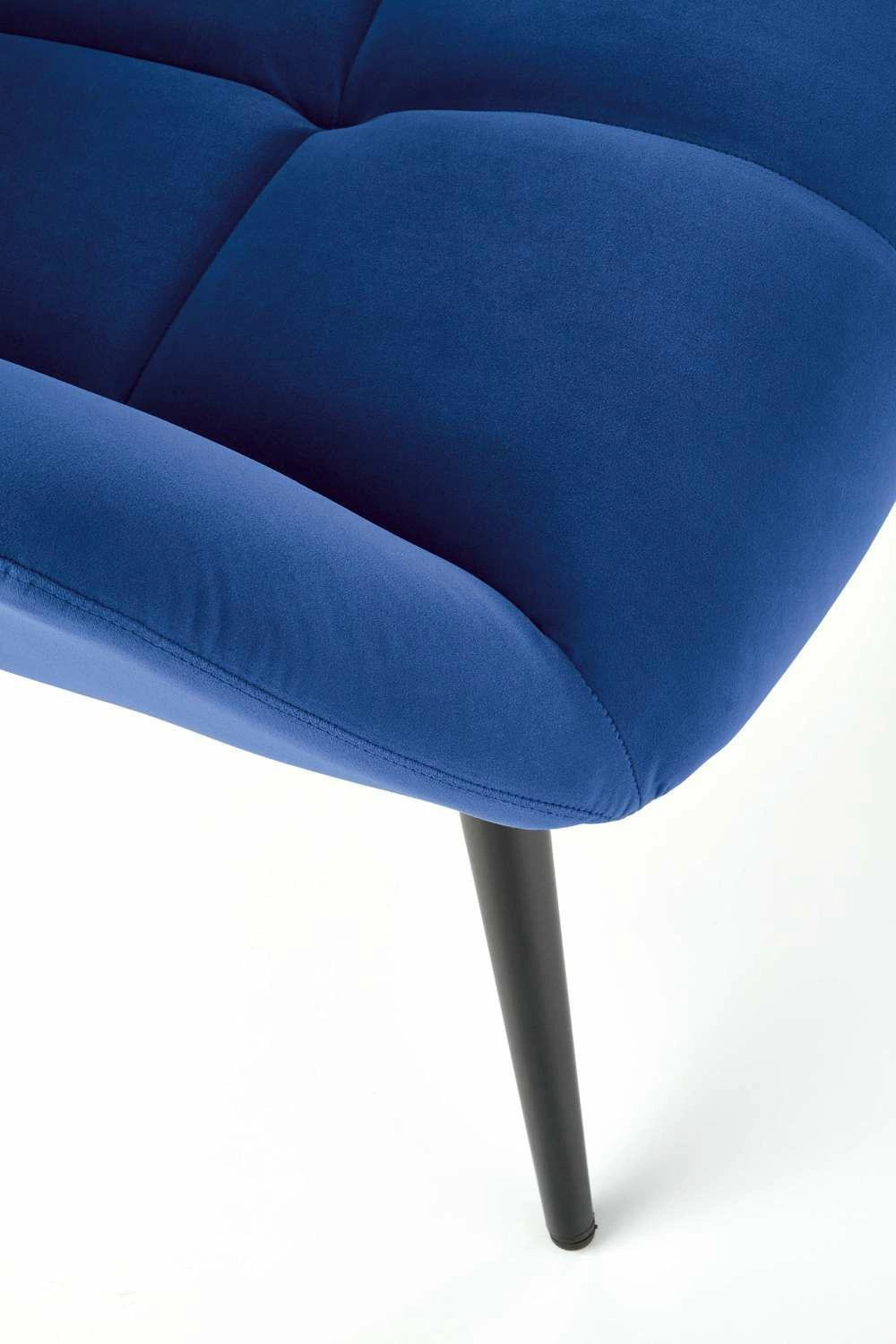 Modrá sametová látka působí nejen velmi elegantně, ale je také příjemná na dotek a snadná na údržbu. Samet odráží světlo a dodává křeslu jemný lesk, který krásně ladí s moderním stylem interiéru. Černý ocelový podstavec na čtyřech nohách zajišťuje pevnost a stabilitu, přitom však působí vizuálně lehce. Model Vadis se skvěle hodí nejen do obývacího pokoje, ale také do ložnice či domácí kanceláře, kde vytvoří ideální místo k relaxaci a načerpání nové energie.