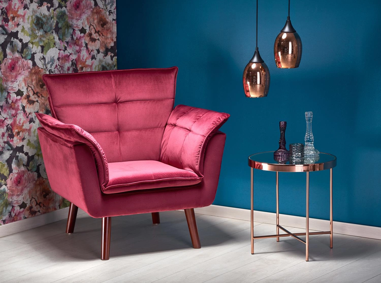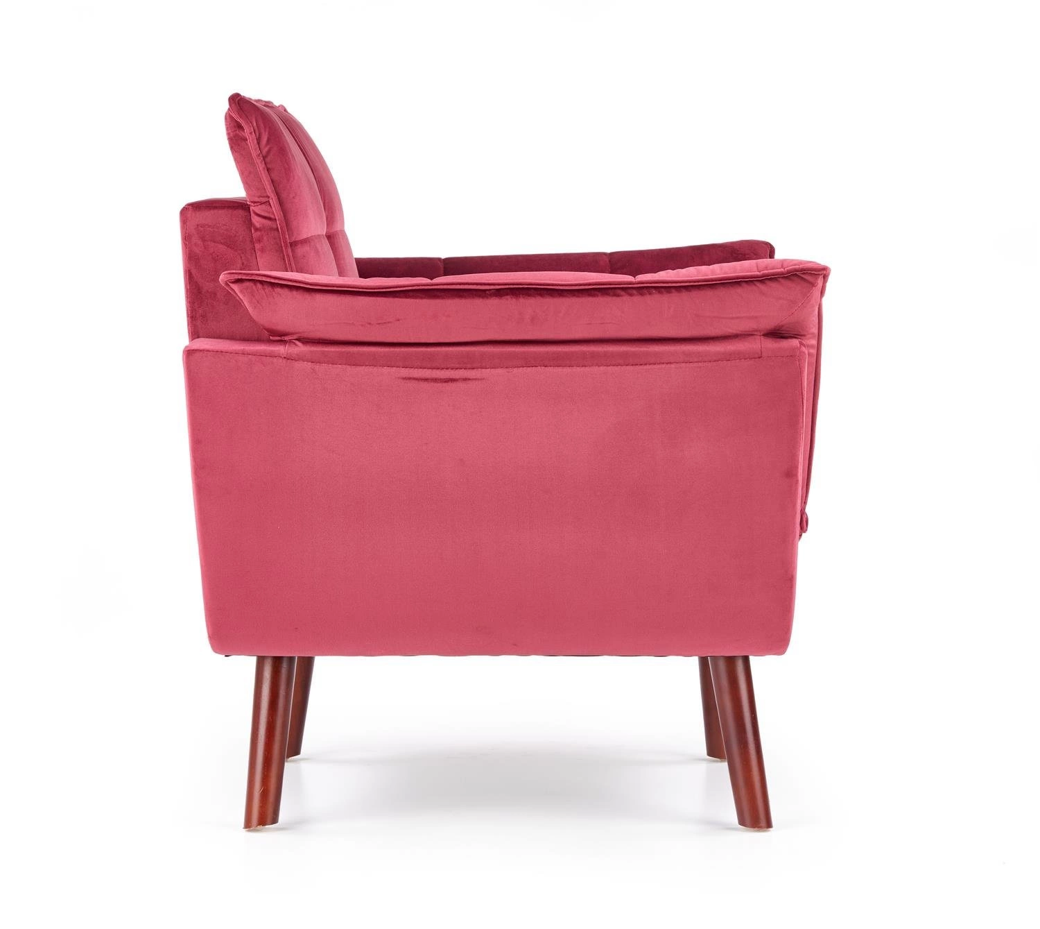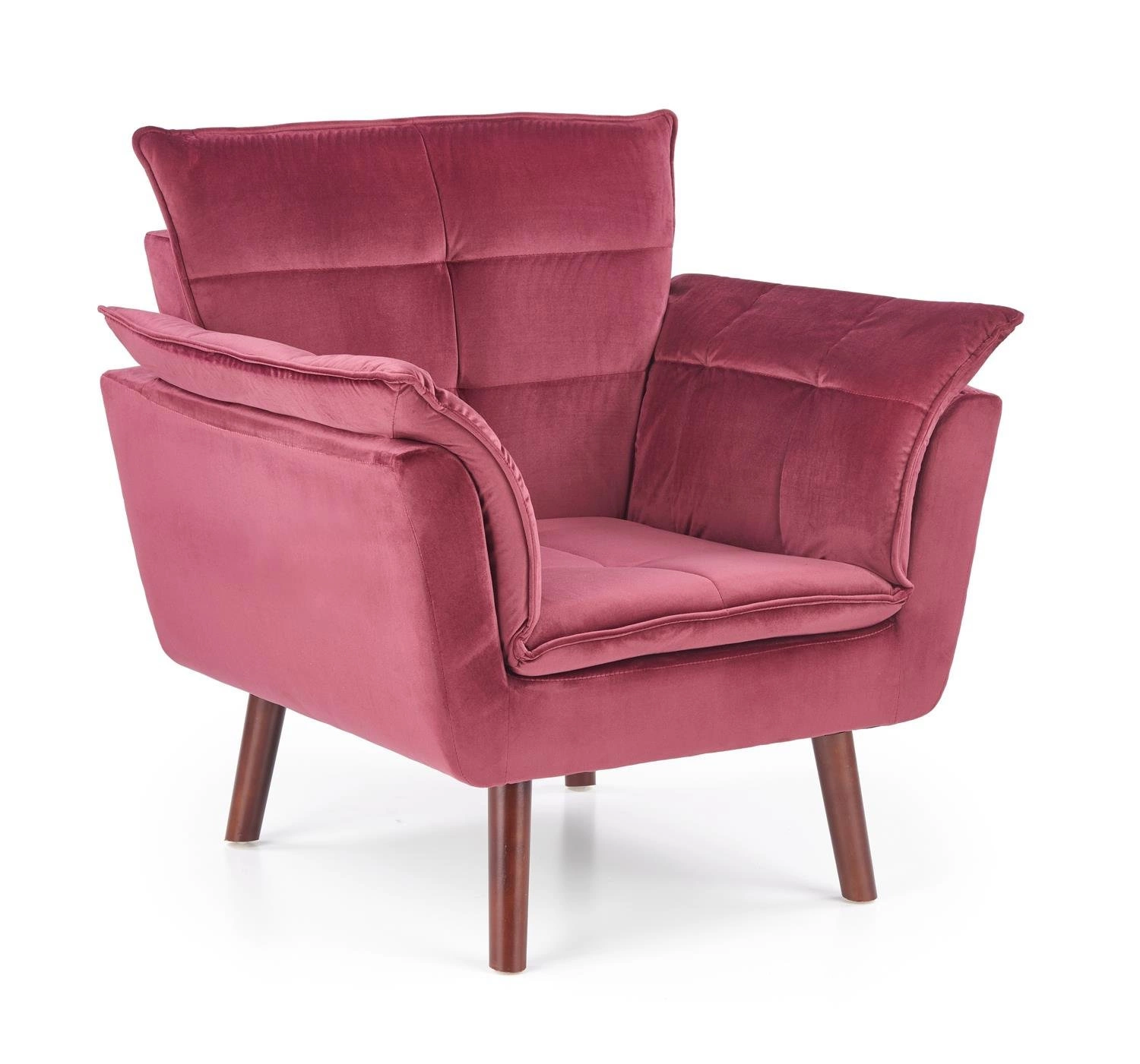 Odpočinkové křeslo Jambo od značky Intesi je spojením moderní elegance a maximálního pohodlí. Vyrobeno z měkkého sametu v hluboké vínové barvě, nabízí široké sedadlo, ergonomické područky a pevnou dřevěnou základnu v tmavě hnědém odstínu. Díky kompaktním rozměrům (šířka 80 cm, hloubka 73 cm, výška 84 cm) je ideální volbou jak do obývacího pokoje, tak do ložnice – poskytne pohodlí při relaxaci i čtení knihy.