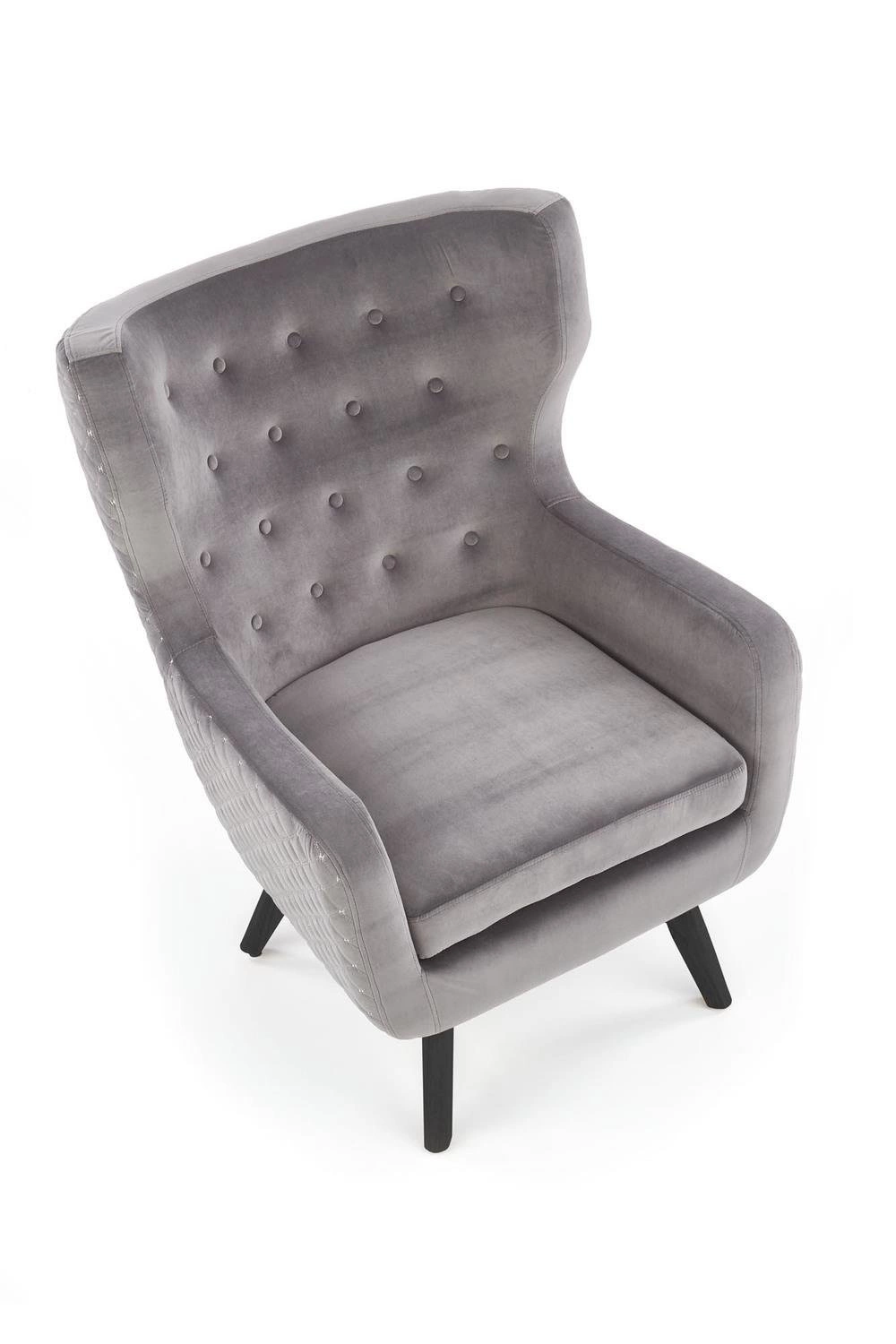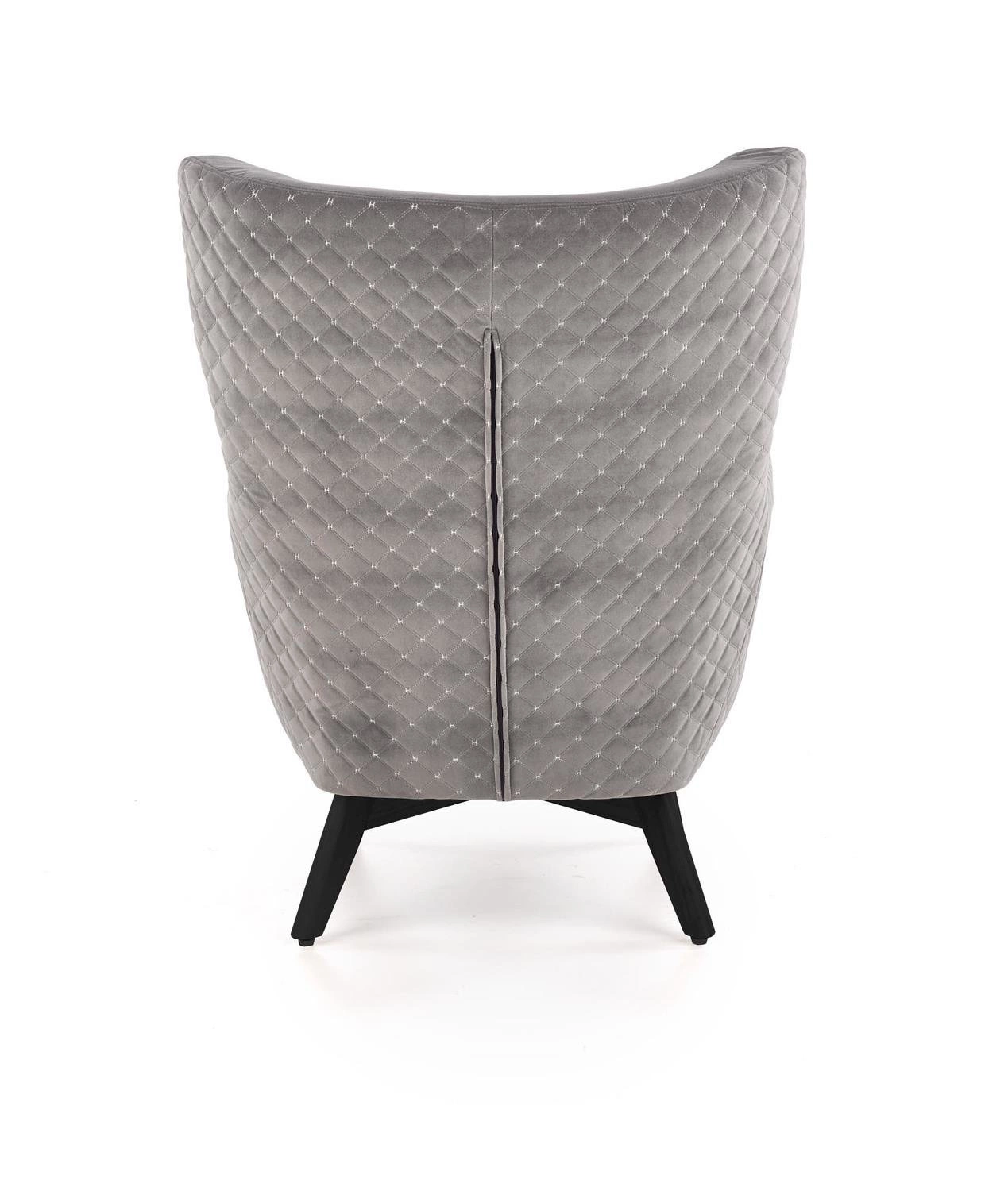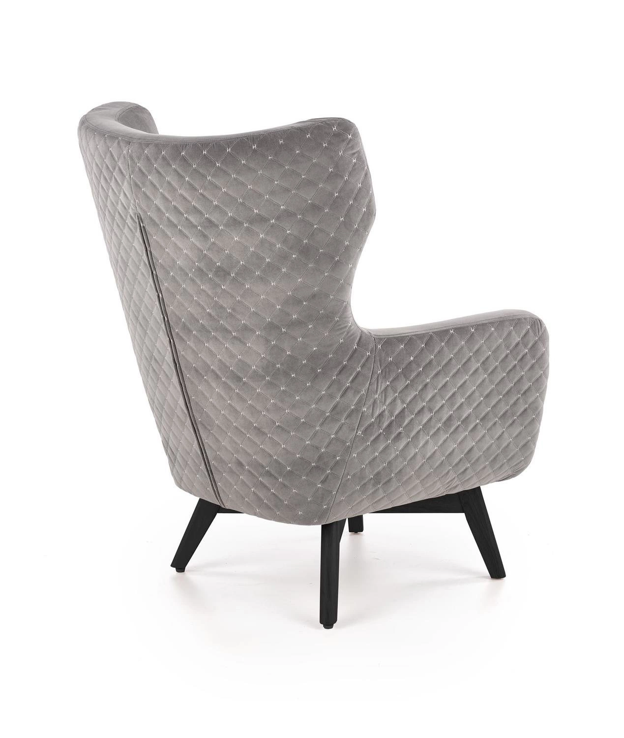 Křeslo ušák Farys značky Intesi je stylové a pohodlné křeslo do obývacího pokoje, čalouněné měkkou sametovou látkou ve světle šedém odstínu. Vysoké opěradlo, široké sedadlo a komfortní područky zajišťují maximální relaxaci, zatímco černá dřevěná základna poskytuje stabilitu a dlouhou životnost. Rozměry 75 × 83 × 103 cm dělají z tohoto kusu nábytku ideální relaxační křeslo nejen do obýváku, ale také do ložnice či domácí pracovny.