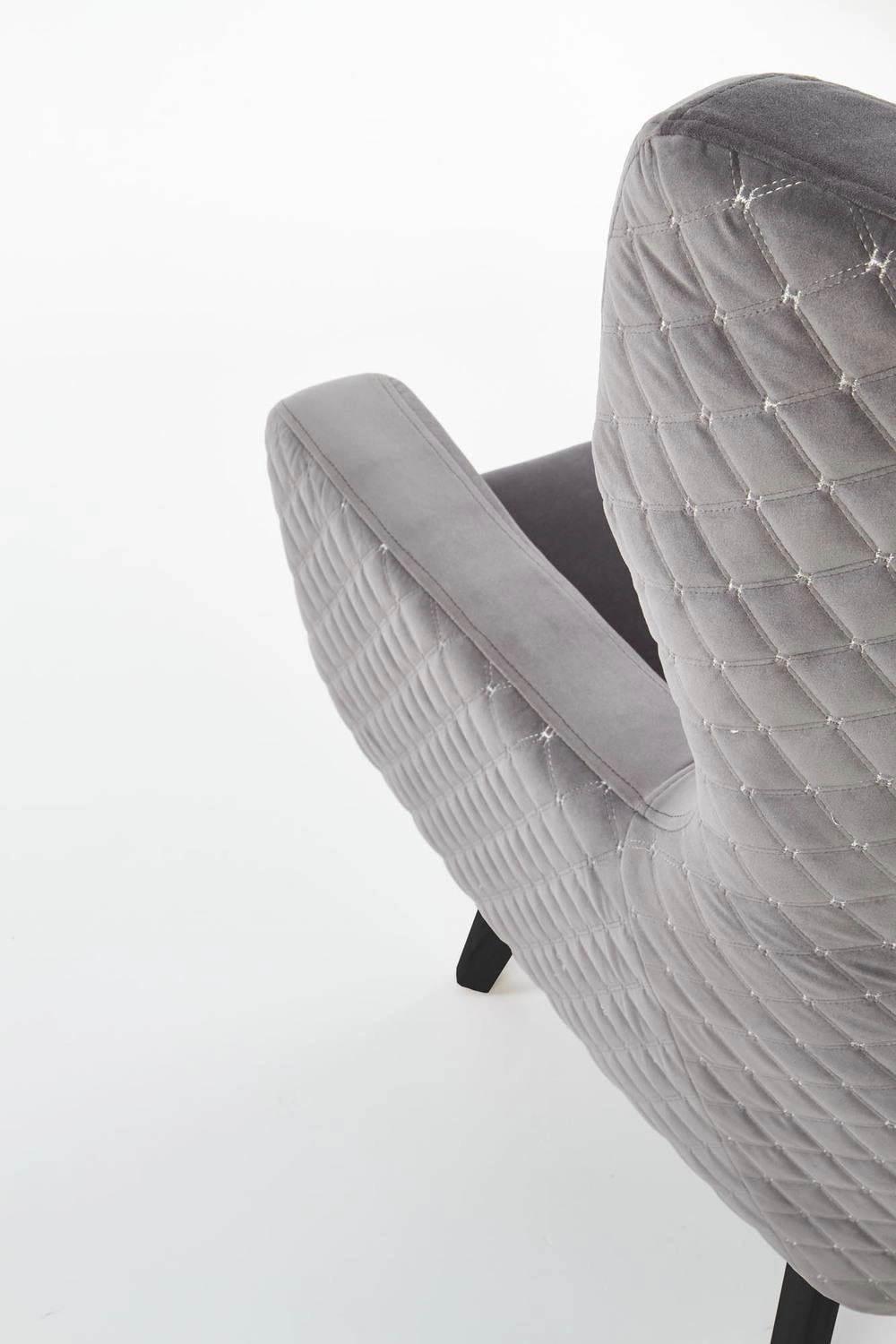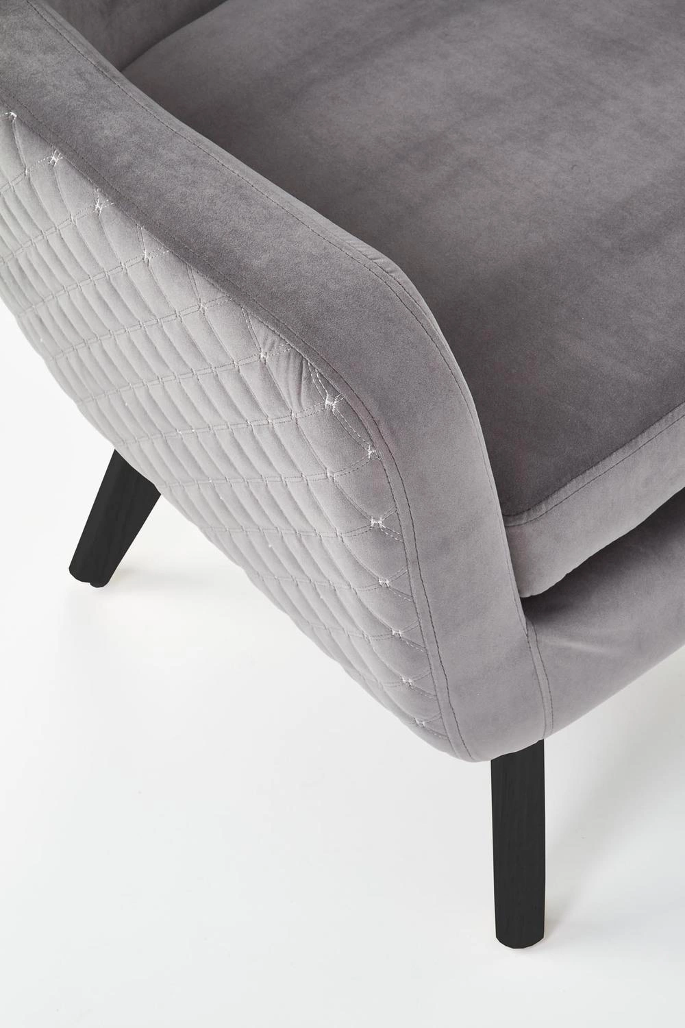 Křeslo Farys je ztělesněním moderního stylu, který spojuje minimalistické linie s jemnou elegancí. Světle šedé sametové čalounění dodává interiéru lehkost a útulnost, a zároveň je velmi příjemné na dotek. Čtyři černé dřevěné nohy vnáší do prostoru špetku sofistikovanosti a zajišťují stabilitu i při dlouhých chvílích odpočinku. Ergonomicky tvarované opěradlo typu „ušák” umožňuje pohodlné opření a relaxaci po náročném dni – ať už při čtení knihy, nebo sledování oblíbeného filmu.