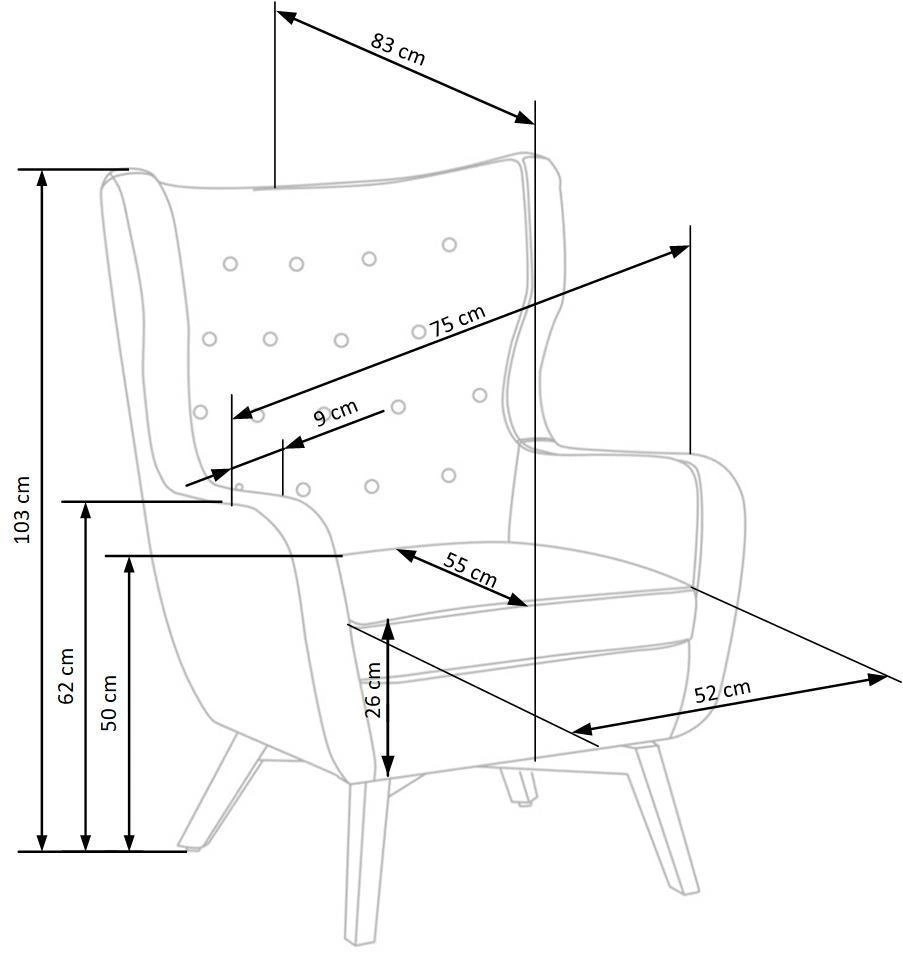 - Vysoké opěradlo typu ušák – perfektní opora pro záda i hlavu