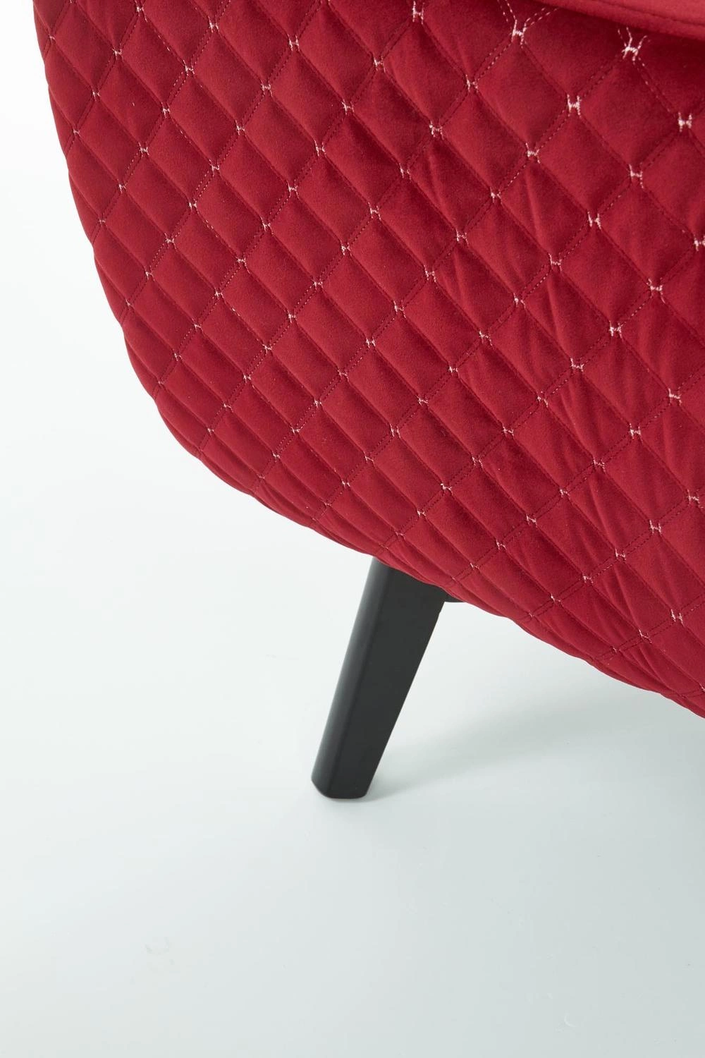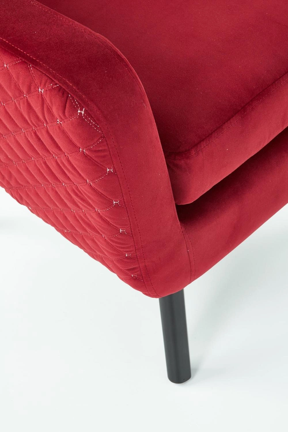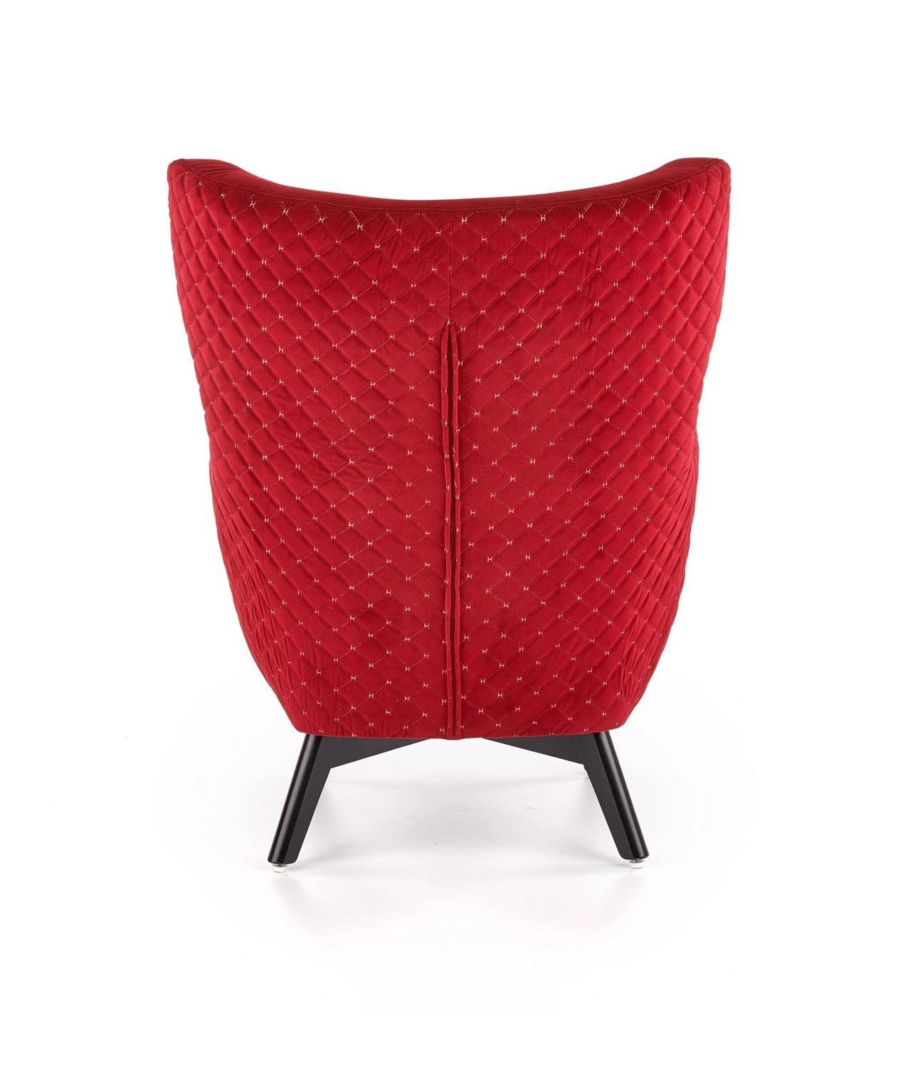 Výrazné, bordó čalounění z měkkého sametu okamžitě přitáhne pozornost a stane se ústředním bodem každého interiéru. Moderní linie nábytku jemně narušuje klasické inspirace „ušáku“ a nabízí svěží pohled na design relaxačních křesel. Černé dřevěné nohy dodávají lehkost, zároveň však zajišťují stabilitu i při intenzivním používání.