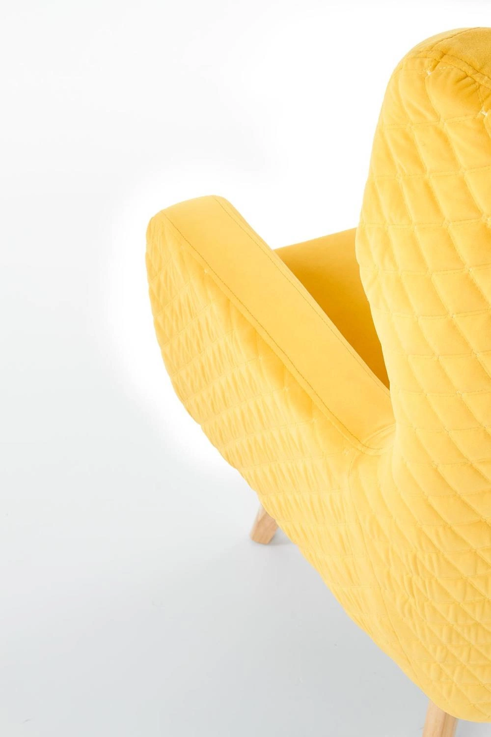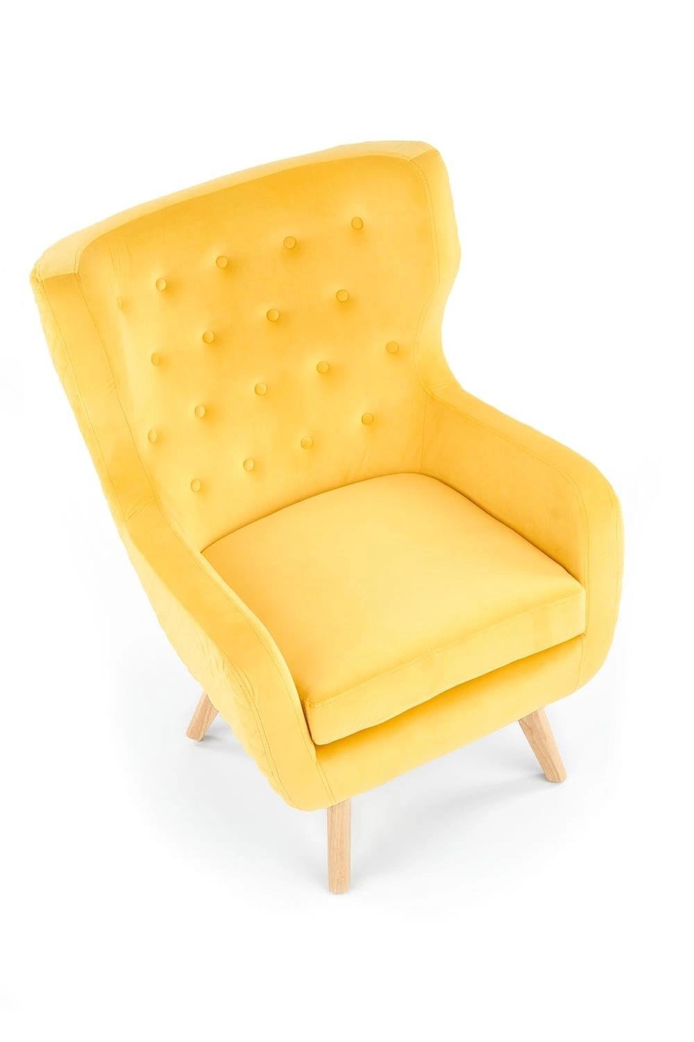Křeslo ušák Farys od značky Intesi je kombinací moderního designu a maximálního pohodlí, která promění každý obývací pokoj. Tento model zaujme žlutým, sametovým čalouněním, vysokým opěradlem s charakteristickými „ušima“ a přírodními, dřevěnými nohami. Šířka 75 cm a hloubka 83 cm zajistí komfortní relaxaci, zatímco područky ještě více zvyšují pohodlí při každodenním používání.