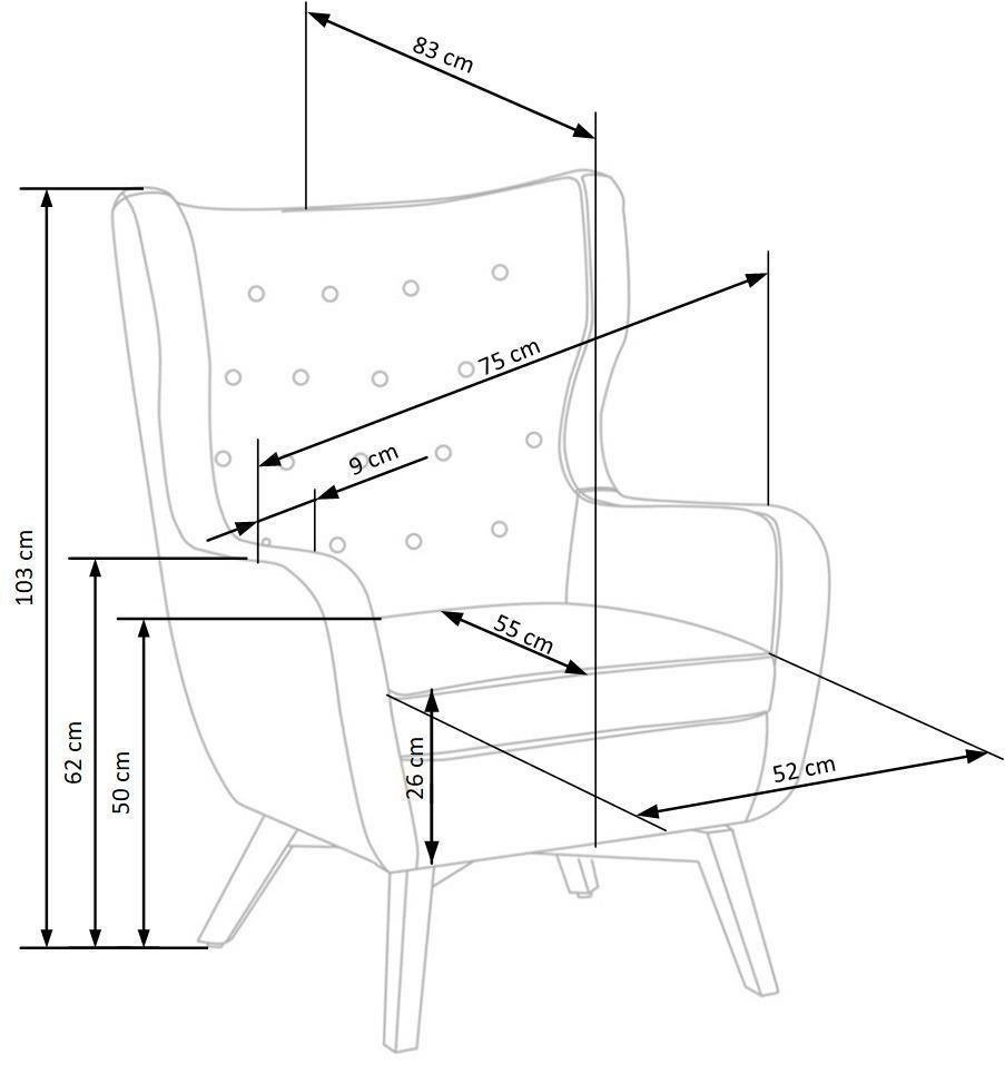 Vysoké opěradlo o výšce 103 cm s ergonomickým tvarováním podporuje záda a umožňuje pohodlné sezení i při delším odpočinku. Sedák ve výšce 50 cm usnadňuje snadné vstávání. Područky poskytují další oporu pro ruce – ideální volba, pokud hledáte křeslo na čtení, odpočinek po práci nebo jako komfortní posezení při setkání s blízkými.