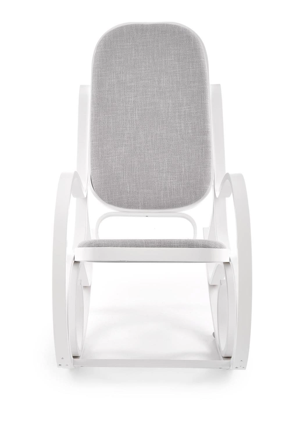 Houpací křeslo Ferda značky Intesi představuje spojení retro elegance s moderním pohodlím. Vyrobené z ohýbaného dřeva v bílé barvě a doplněné světle šedou látkou, zaujme stylovým vzhledem i praktičností. Vysoké opěradlo o výšce 73,5 cm a široké, komfortní sedadlo zajišťují vynikající oporu a příjemný odpočinek v obývacím pokoji nebo ložnici.