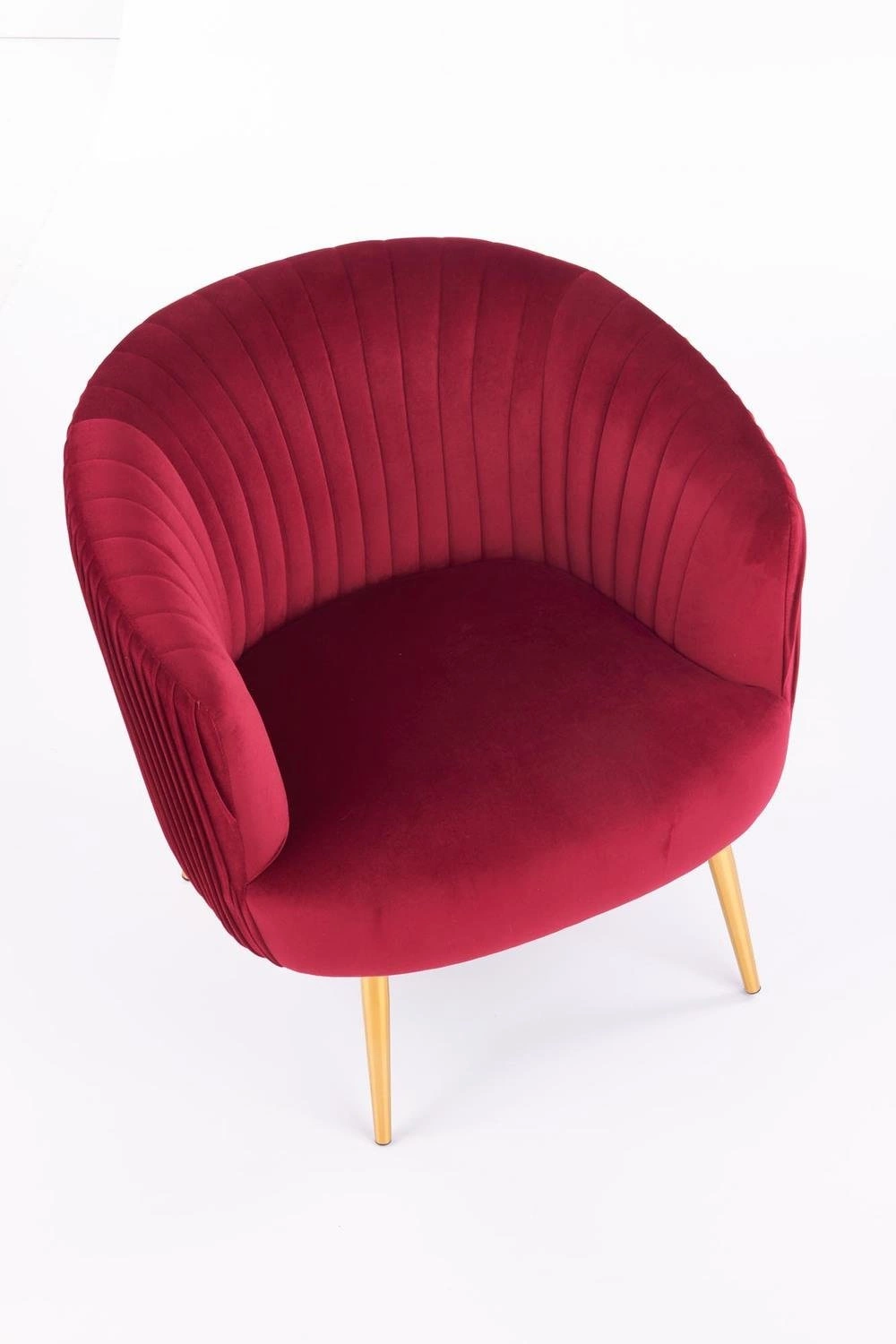 Křeslo Dargo se skvěle hodí do moderních interiérů obývacího pokoje, ložnice nebo domácí pracovny. Vínová sametová látka zaujme nejen sytou barvou, ale také příjemnou strukturou na dotek, která podtrhuje luxusní charakter tohoto kusu nábytku. Zlatá, štíhlá podnož dodává křeslu lehkost a křeslo tak vynikne i v menších prostorách. Je to ideální volba pro ty, kteří chtějí do svého bytu vnést eleganci a originalitu.