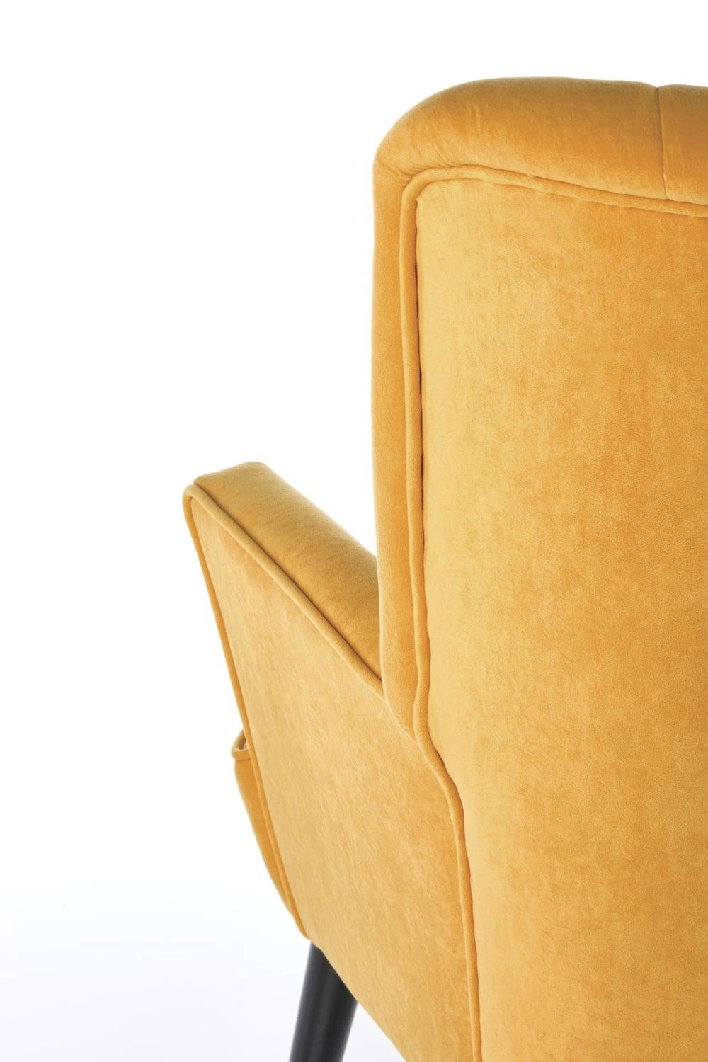 - Velurová látka v tmavě žluté barvě – vnáší do interiéru luxusní prvek a upoutá pozornost vašich hostů.