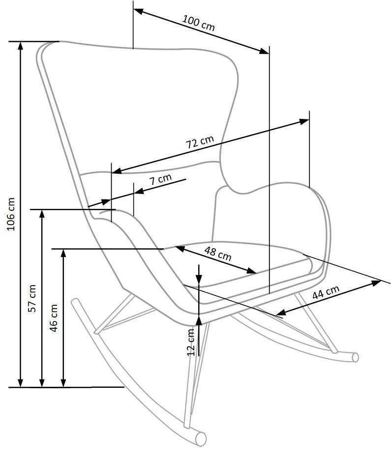 Ergonomicky tvarované opěradlo a područky poskytují přirozenou oporu zádům i ramenům, zatímco jemné houpání podporuje uvolnění. Stabilní konstrukce ze dřeva a kovu umožňuje bezpečné používání křesla až do maximální nosnosti 120 kg. Bouclé látka je nejen efektní, ale i praktická, díky čemuž křeslo zůstává dlouhodobě v perfektním stavu.
