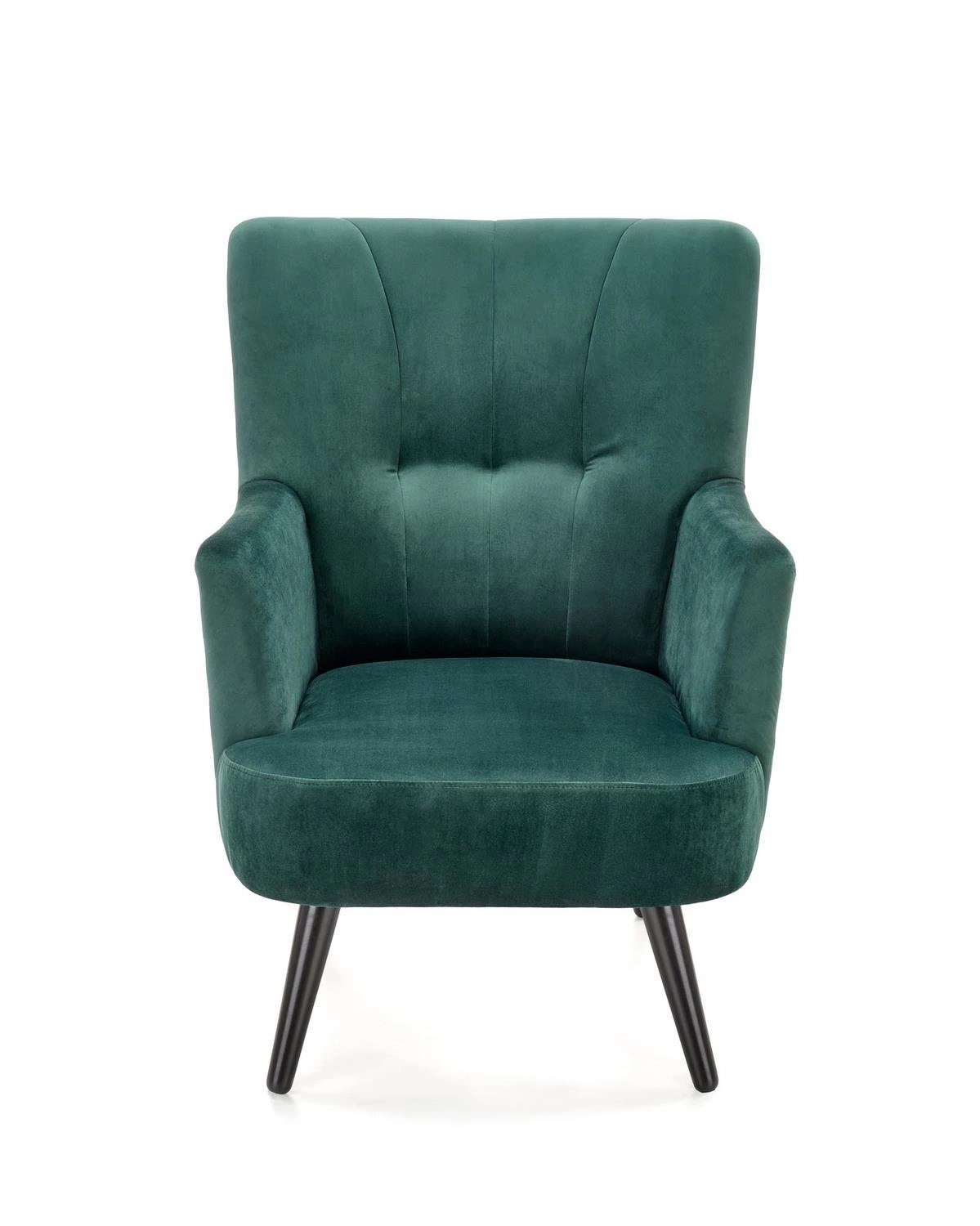 Křeslo Gredos okouzlí minimalistickým, moderním designem, který vynikne v obývacím pokoji zařízeném dle současných trendů. Hluboká zelená barva čalounění dodává interiéru šmrnc a svěžest, čímž podtrhuje osobitý charakter prostoru. Černá dřevěná základna nejen stabilizuje celou konstrukci, ale také přináší jemný kontrast, který přitahuje pozornost.