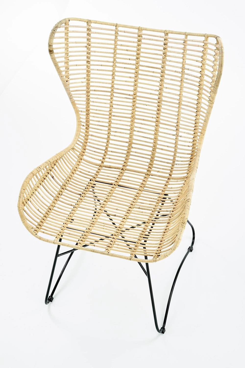 Ratanové křeslo Ikar od značky Intesi je kombinací přírodního, světlého ratanu a pevné ocelové základny v černé barvě. Vysoké opěradlo a ergonomicky tvarované sedadlo (výška 46 cm) zajišťují pohodlí při odpočinku v obývacím pokoji, ale i při relaxaci na terase nebo na zahradě. Moderní silueta křesla v boho stylu skvěle zapadne do trendových interiérů i venkovních prostor.