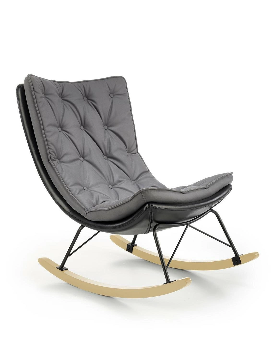Houpací křeslo Digro od značky Intesi je ideální volbou pro milovníky moderního bydlení, kteří oceňují pohodlí a originální design. Křeslo je postavené na pevných, dřevěných lyžinách a potažené příjemnou šedou látkou, která zaručuje komfort při každodenním používání. Díky promyšleným rozměrům – výška 100 cm, šířka 72 cm a hloubka 110 cm – se skvěle hodí jako křeslo do obývacího pokoje nebo domácí relaxační zóny.