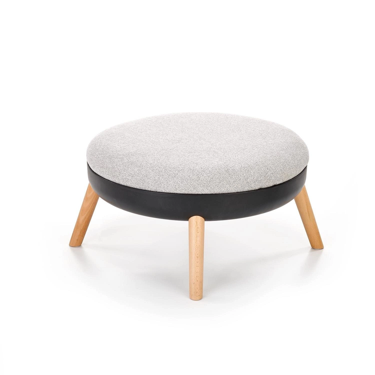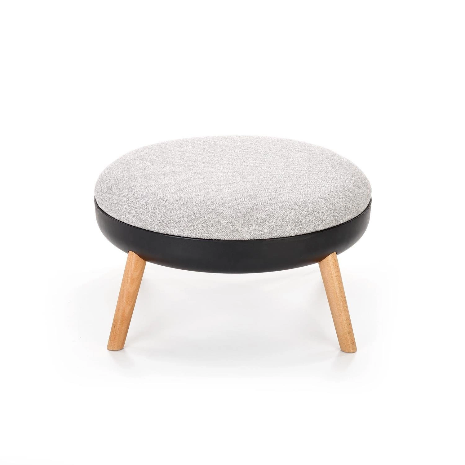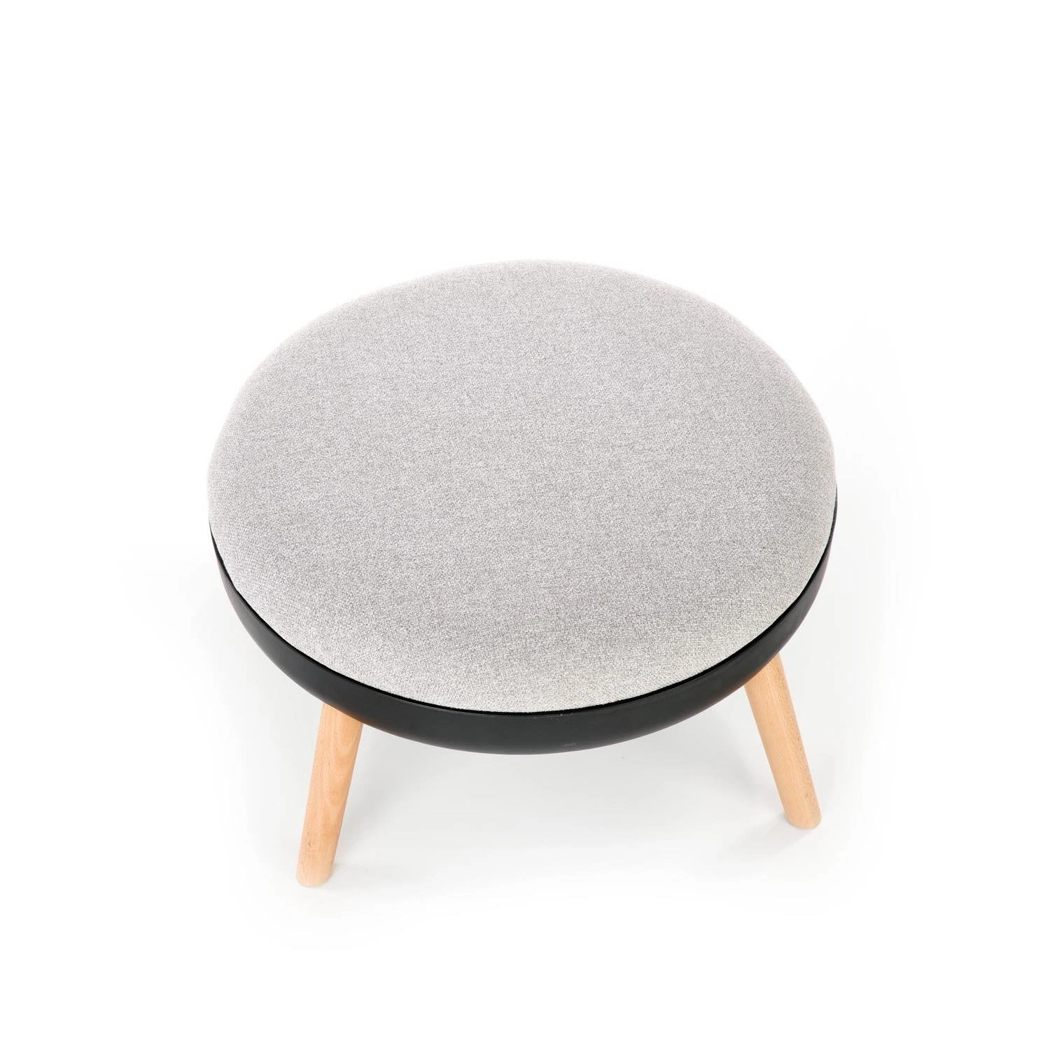 Čalouněný kulatý taburet Redo Intesi šedý skandinávský křeslo a obývací pokoj dřevo