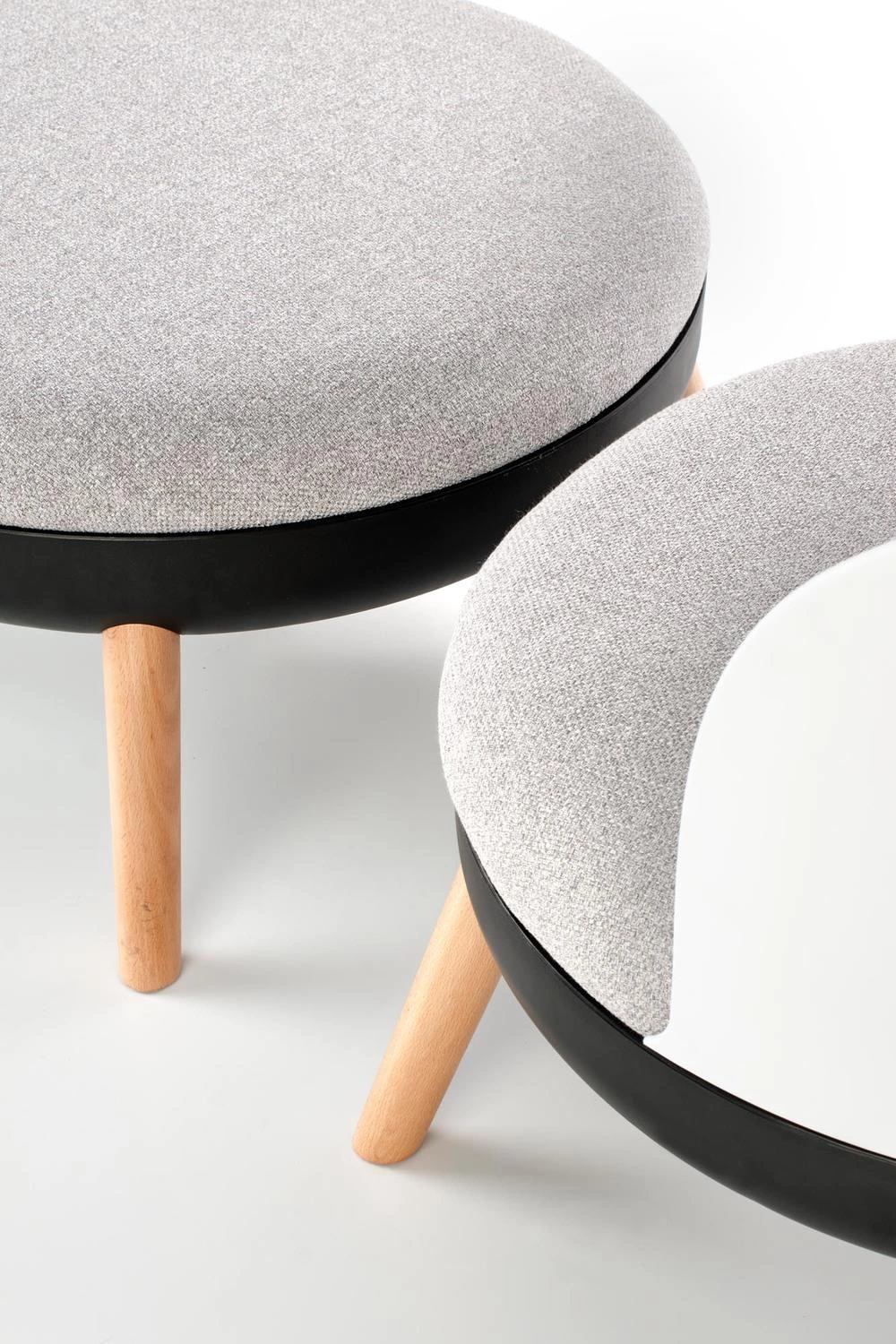 • Kulatý čalouněný taburet – pohodlná opora nohou a designový prvek v jednom