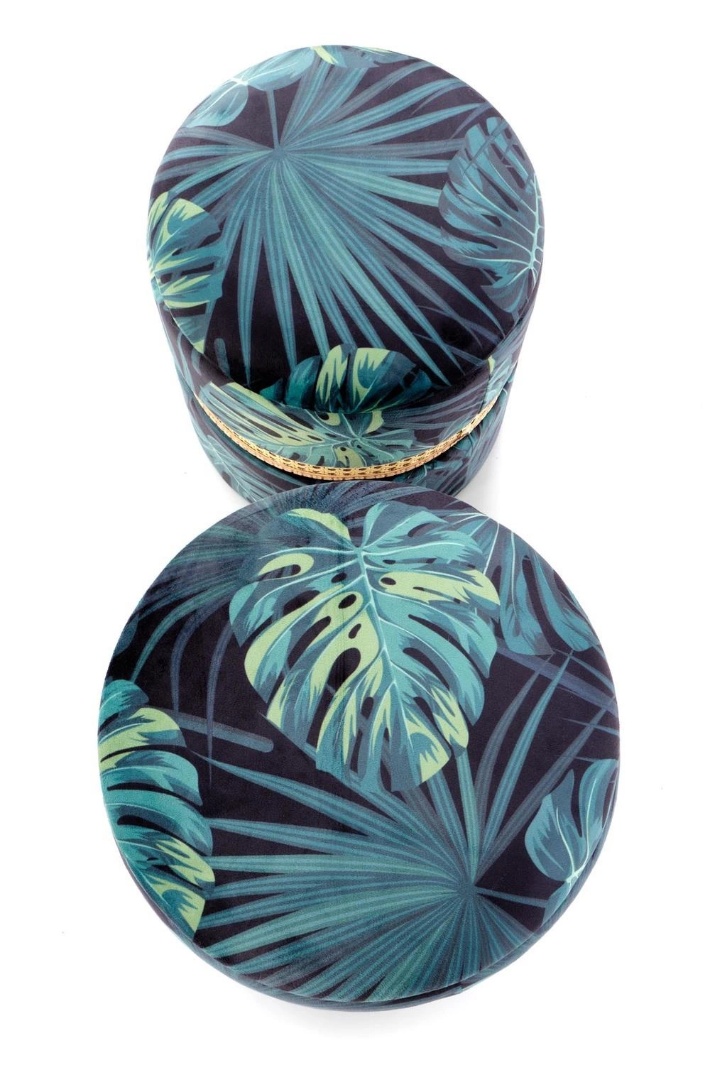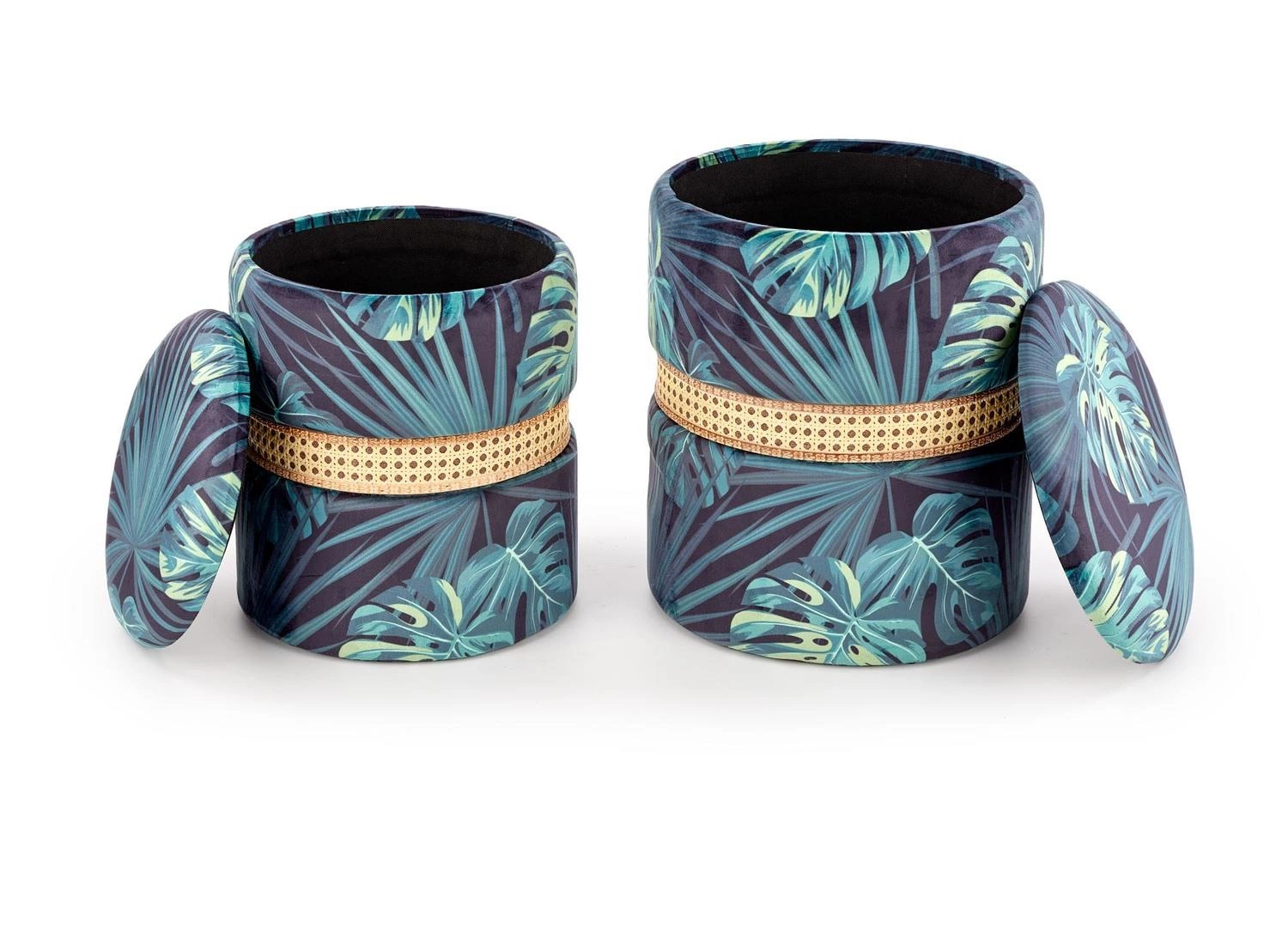 Sada 2 kulatých zelených taburetů Dadra s úložným prostorem do obýváku a předsíně ratan čalouněné