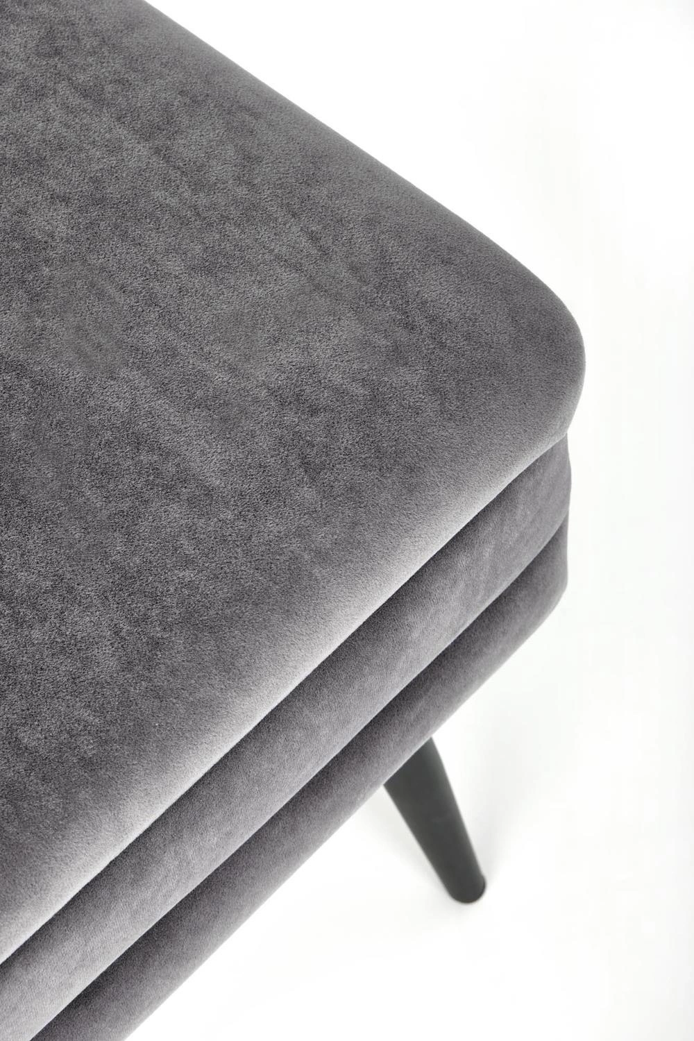 Lavice Vanel je nábytek navržený pro milovníky vytříbeného glamour stylu. Sametová šedá látka nejen okouzlí jemným leskem, ale je také mimořádně příjemná na dotek – každý okamžik odpočinku se tak stává skutečným potěšením. Minimalistické provedení bez opěradla a výrazné černé kovové nohy podtrhují moderní charakter, který perfektně zapadne jak do klasických, tak i do odvážnějších interiérů.