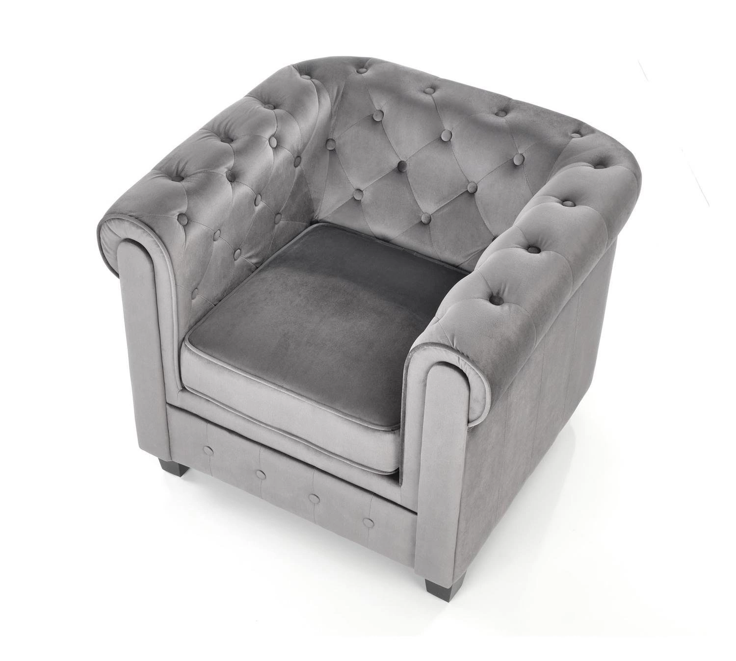 Křeslo typu “křesílko” Dassion od značky Intesi je kombinací moderního designu a stylu glamour v šedém sametovém provedení. Čalouněné měkkou sametovou látkou, s širokými područkami a ergonomicky tvarovaným opěradlem, zaručuje maximální pohodlí při každodenním používání. Stabilní konstrukce na čtyřech černých dřevěných nohách perfektně zapadne do obývacího pokoje, ložnice nebo domácí pracovny a vytvoří útulnou relaxační zónu. Šířka 62 cm, hloubka 75 cm a výška 73 cm umožňují snadné začlenění křesla do většiny interiérů bez zbytečného zabírání místa.