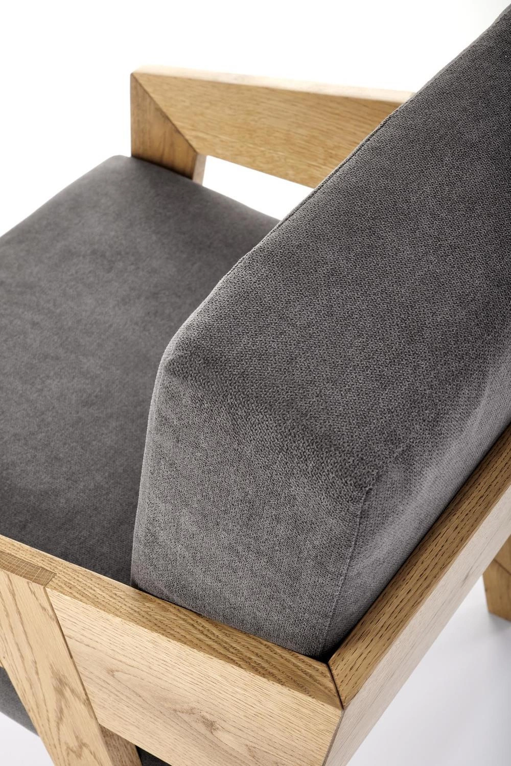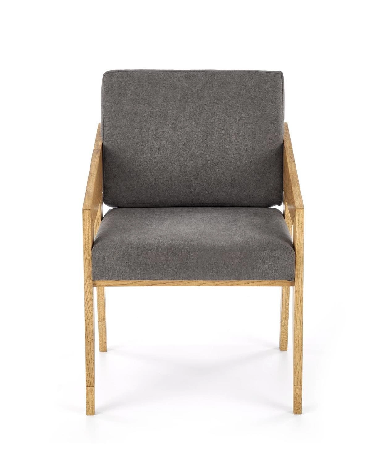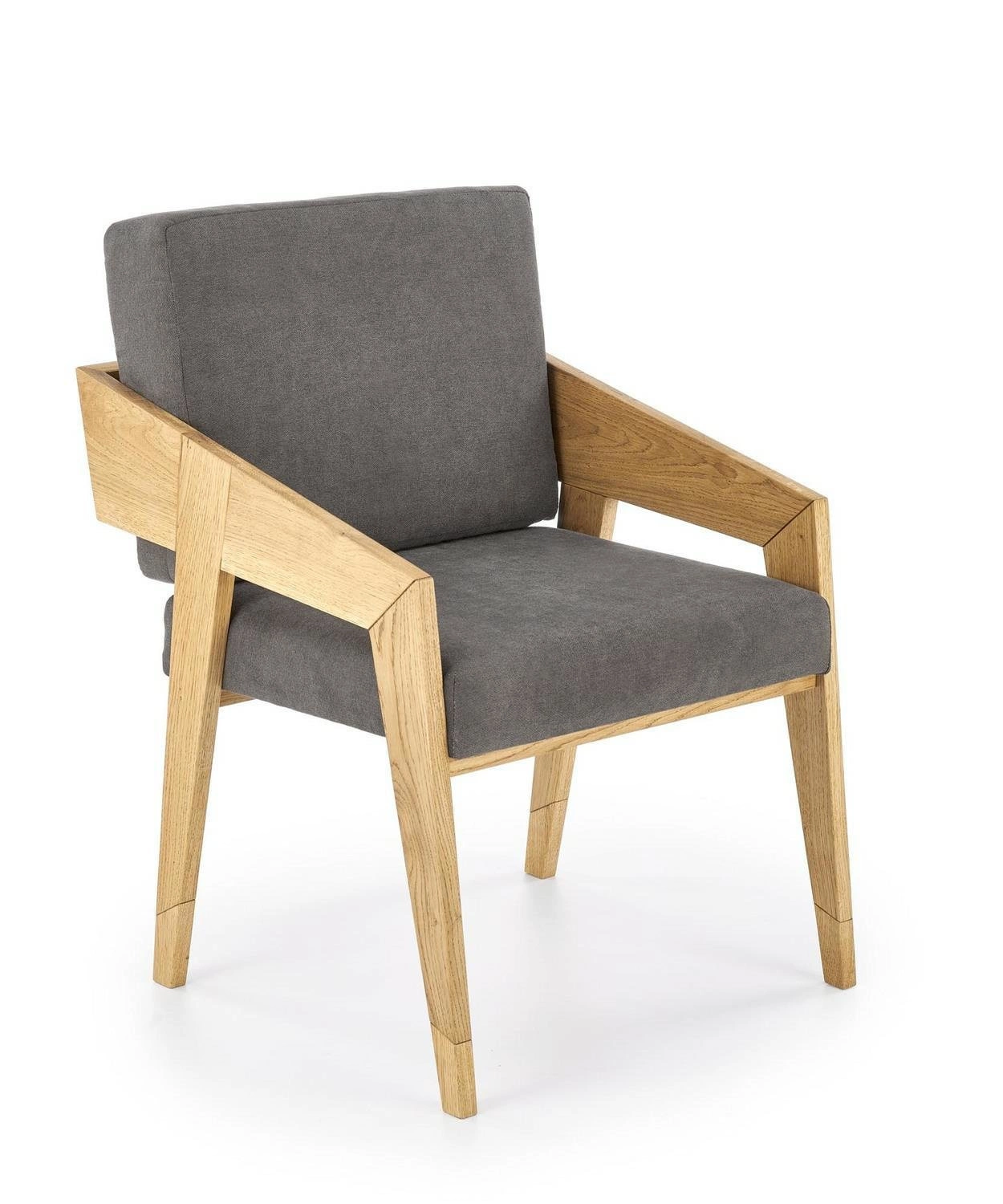 Šedé skandinávské křeslo Davero s dubovými nohami, čalouněné do obýváku