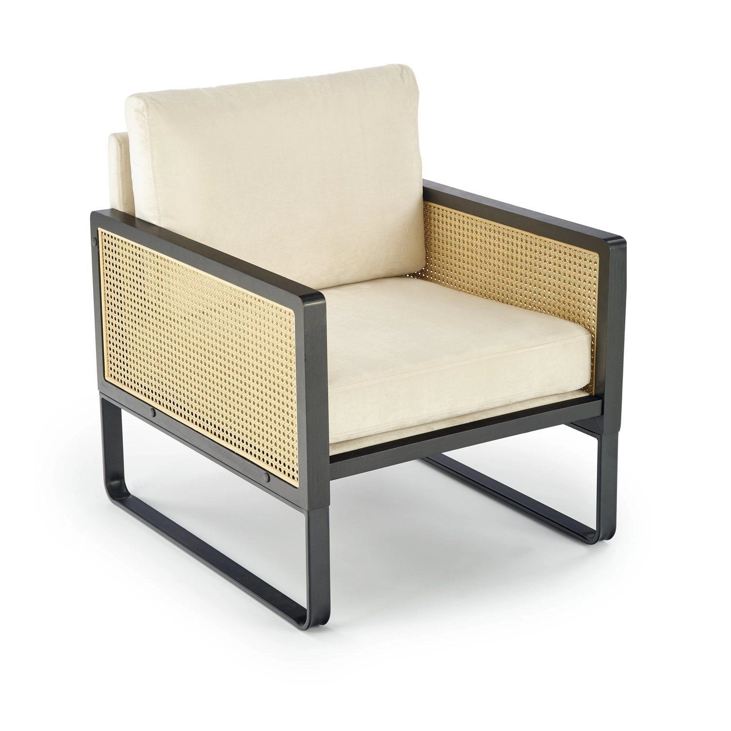 Edra dokonale vystihuje ducha boho stylu – spojuje měkkou, na dotek příjemnou sametovou látku s prvky technoratanu a černou, štíhlou ocelovou konstrukcí. Jemný béžový odstín sedáku navozuje harmonii a útulnost, zatímco kontrastní základna dodává celku vzdušnost. Toto křeslo do obýváku je ideální volbou pro milovníky přírodních inspirací a uvolněných aranžmá, kteří ocení jak pohodlí, tak originální designový nádech.