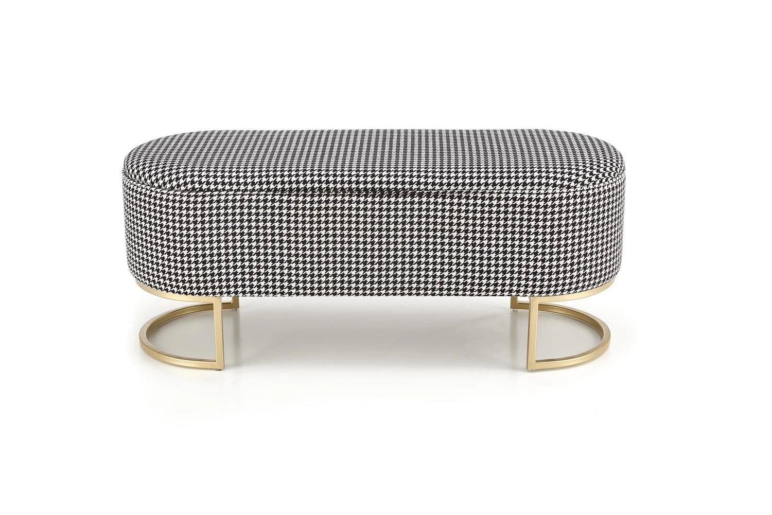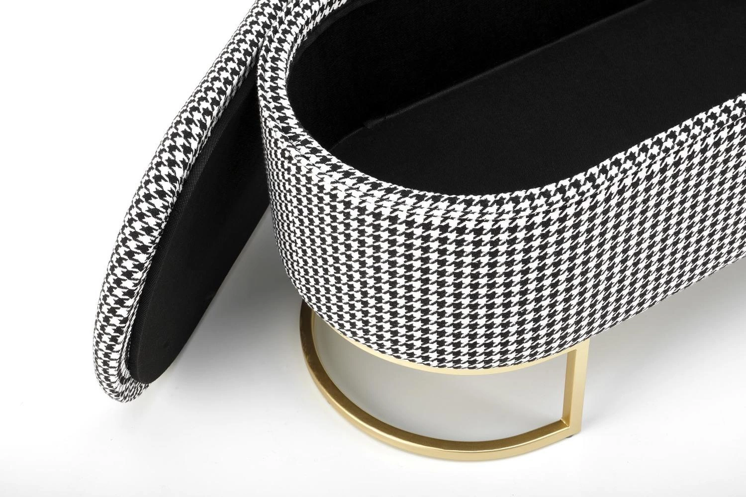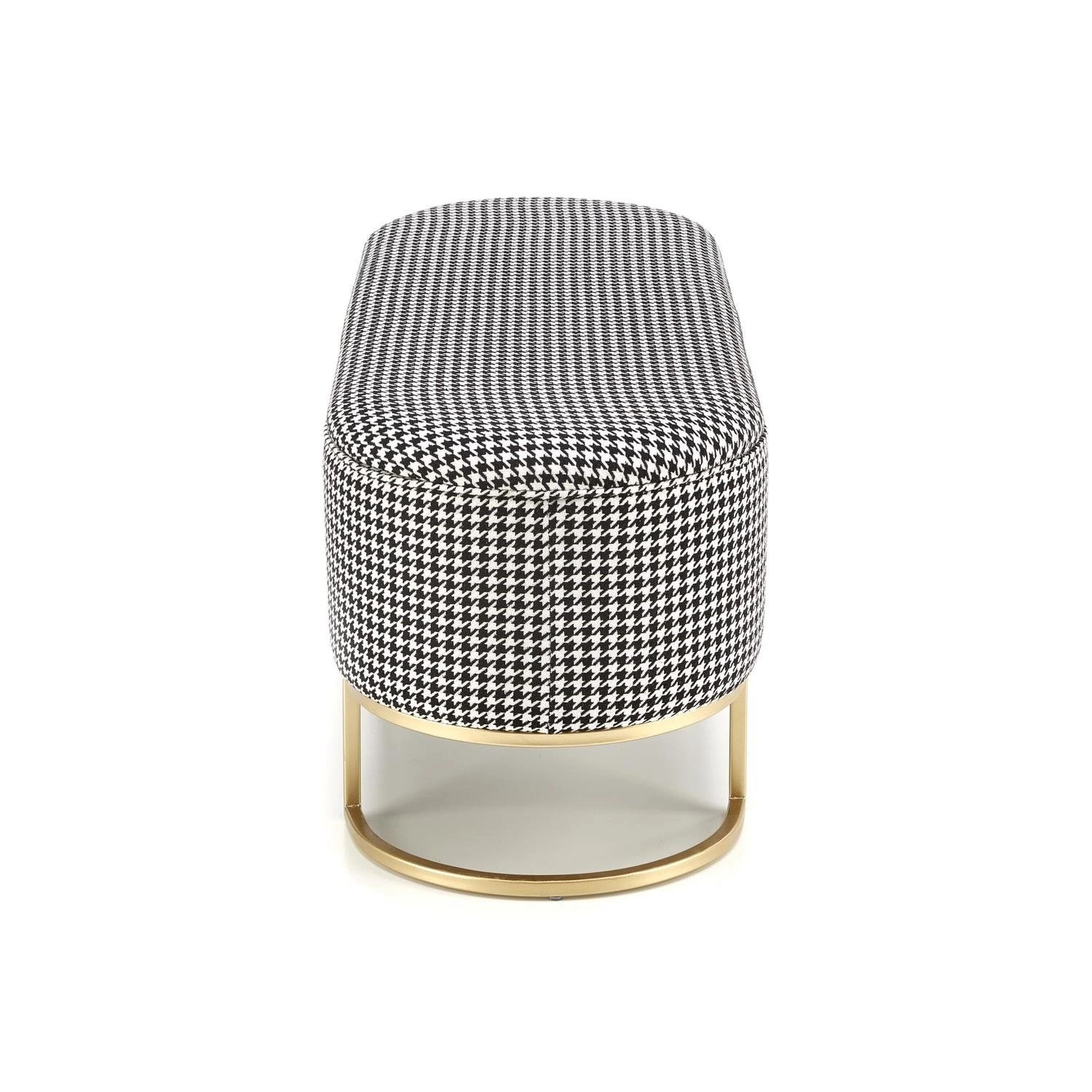 Čalouněná lavice Edessa s úložným prostorem do předsíně v pepitovém vzoru glamour na zlatých nohách