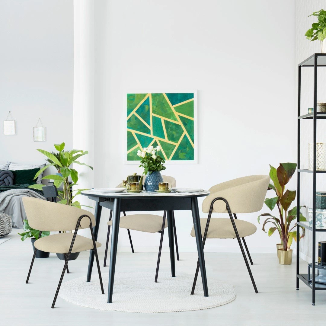 Každý detail židle Larisa byl navržen s ohledem na maximální komfort při každodenním používání. Tvarované opěradlo a područky poskytují oporu zádům i pažím, takže i delší posezení u stolu nebo během večeře je skutečným potěšením. Čalouněný sedák v teplém béžovém odstínu nejen že působí elegantně, ale díky pěně se perfektně přizpůsobí tělu a je mimořádně měkký. Tento model je ideální volbou, pokud hledáte loftovou židli do jídelny nebo kuchyně, která vašemu interiéru dodá útulnost a moderní charakter.