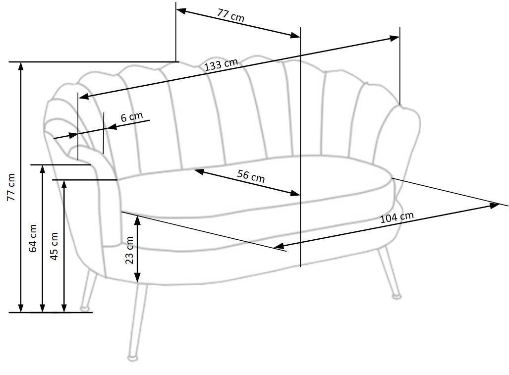 Hloubka 77 cm a výška sedáku 45 cm zajišťují pohodlnou oporu pro relaxaci u knihy, šálku kávy nebo při setkáních s blízkými. Sametová látka poskytuje měkkost a příjemný pocit, zatímco ergonomické proporce umožňují komfortní odpočinek i při delším sezení. Stabilní konstrukce ze oceli nejen působí stylově, ale zároveň zajišťuje dlouhou životnost a bezpečnost při každodenním používání.