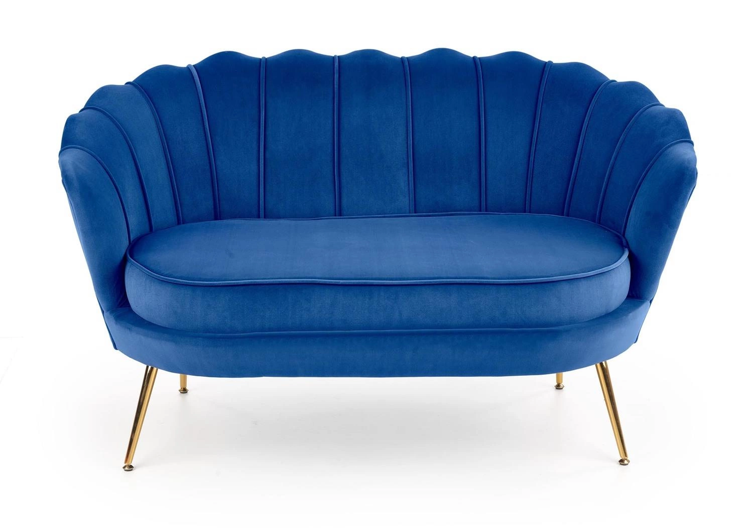 Dvoumístná sametová pohovka Florencja v tmavě modré barvě glamour na zlatých nohách do obýváku Intesi