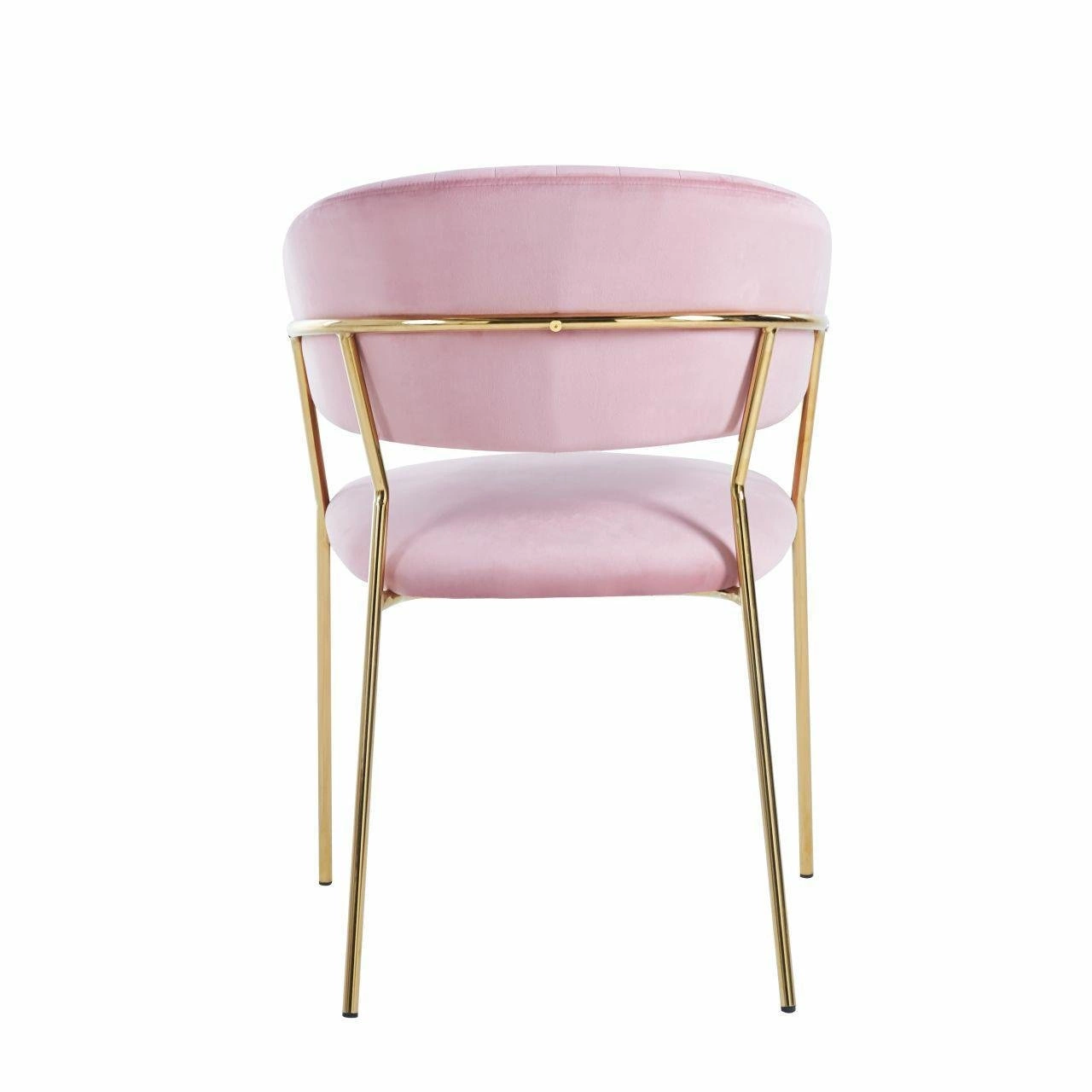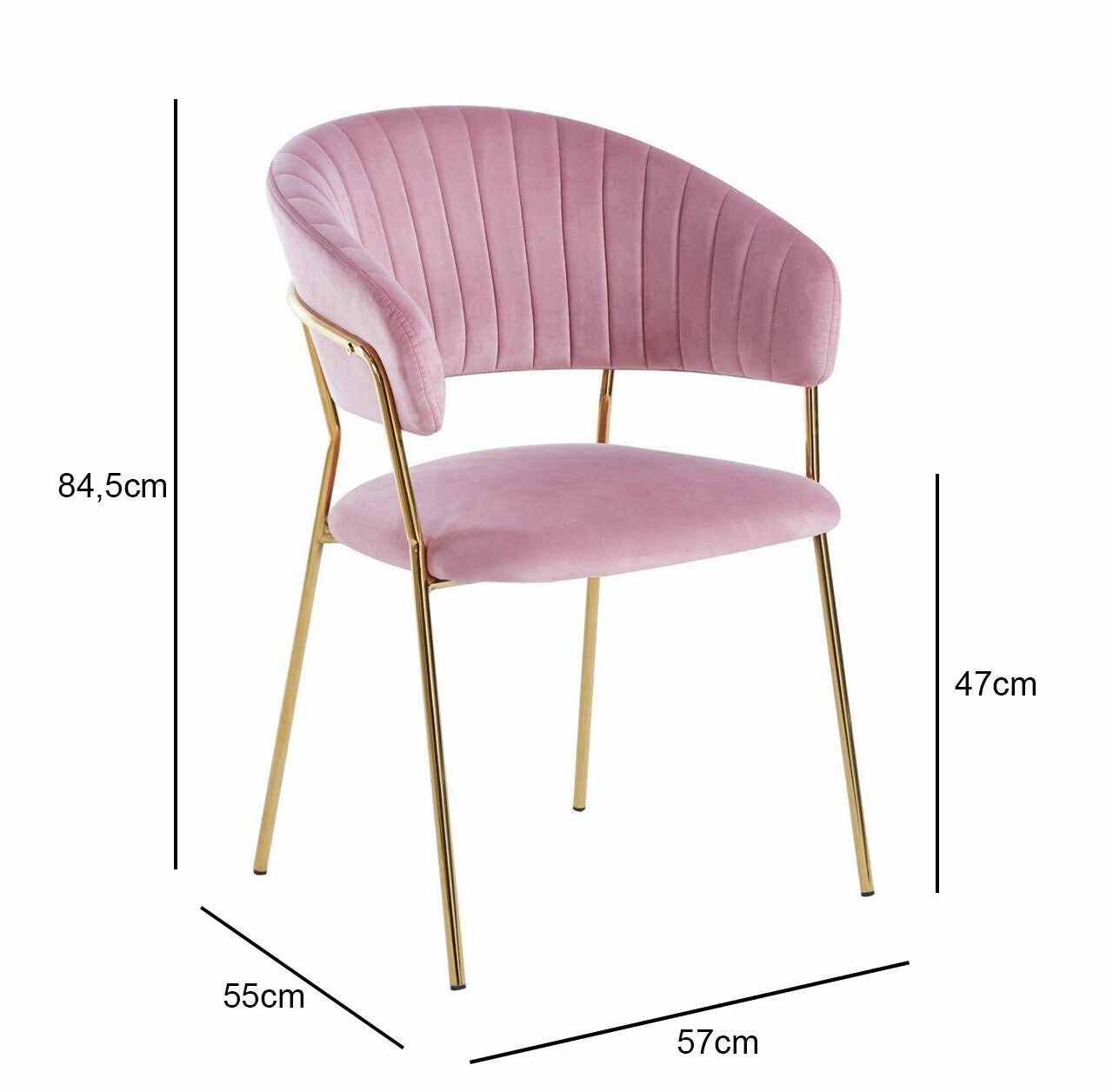 Čalouněná sametová židle Glamour Intesi růžová se zlatými nohami je nejen ozdobou interiéru, ale také praktickým řešením pro jídelnu, obývací pokoj i elegantní kavárnu. Spojte několik židlí kolem stolu a vytvořte místo pro společná setkání, nebo ji postavte samostatně – k toaletnímu stolku či do čtecího koutku. Jde o model, který uspokojí i ty nejnáročnější milovníky krásného a funkčního nábytku.