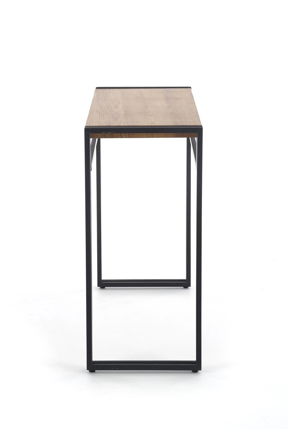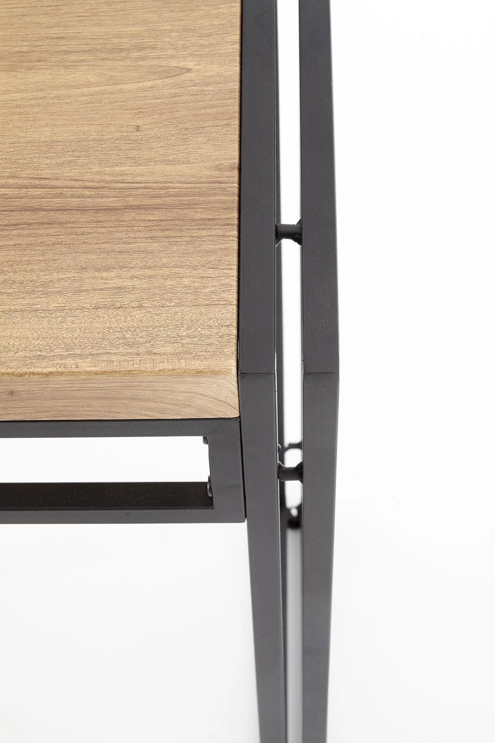 Výrazná kombinace světlého dubu a kontrastní černé dodává této konzoli osobitý industriální vzhled. Jednoduchý tvar s obdélníkovou deskou a minimalistickými lyžinami podtrhuje moderní charakter nábytku, zatímco polomatná povrchová úprava přidává jemnou eleganci. Ideální volba pro ty, kteří ocení syrový loftový styl a praktičnost při zařizování domácnosti.