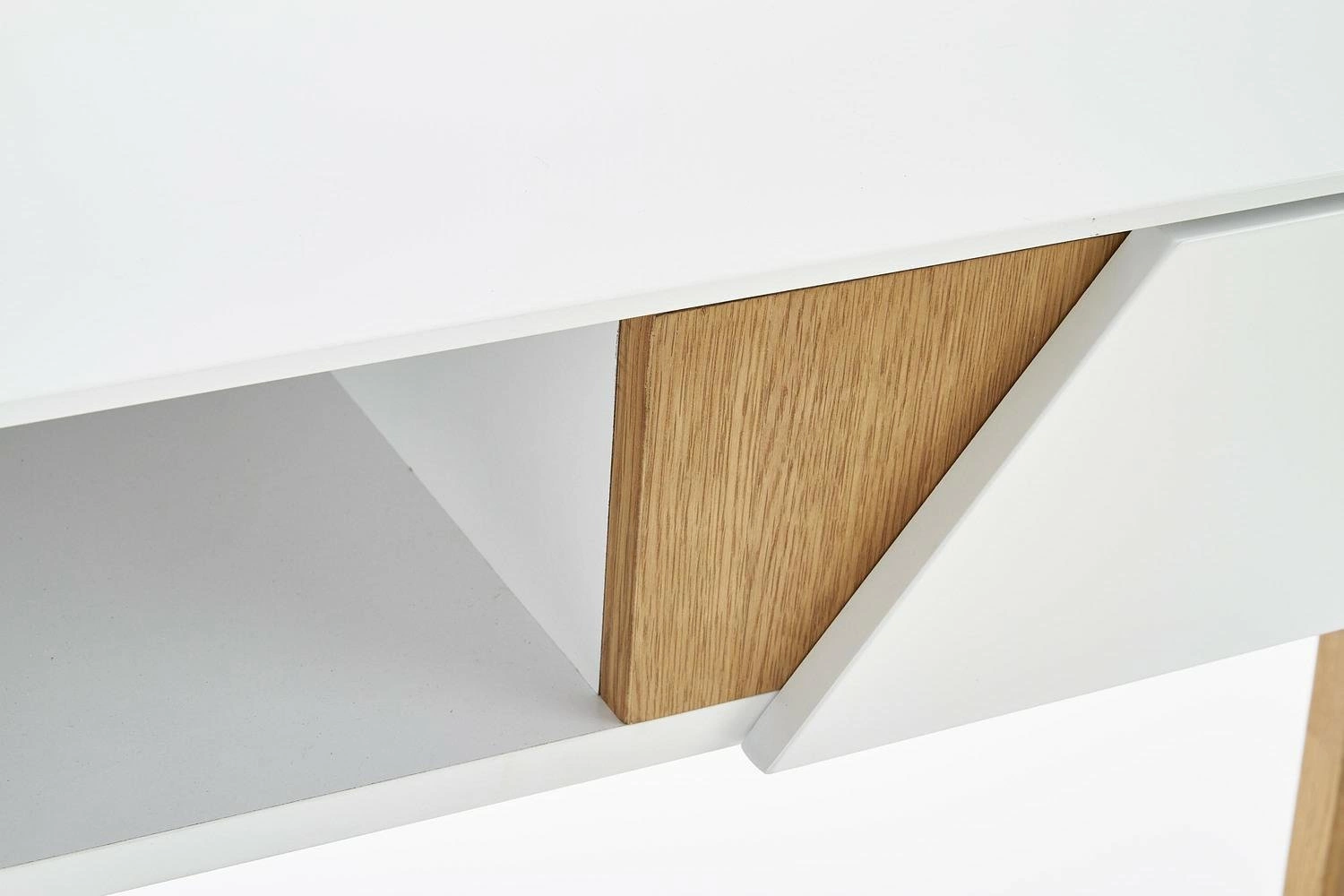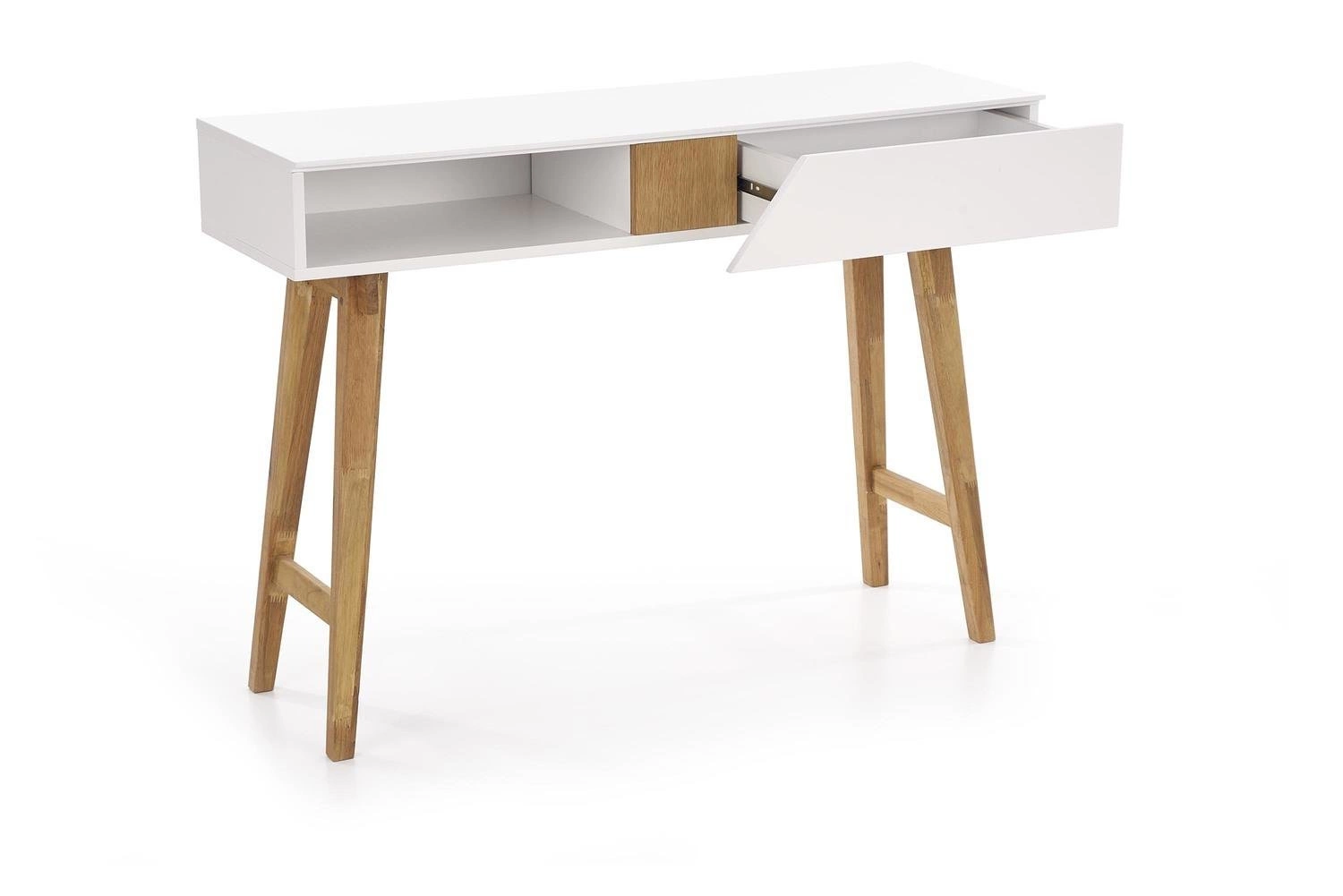 Bílá skandinávská konzole Indigo se zásuvkou a policí do předsíně, obýváku nebo ložnice