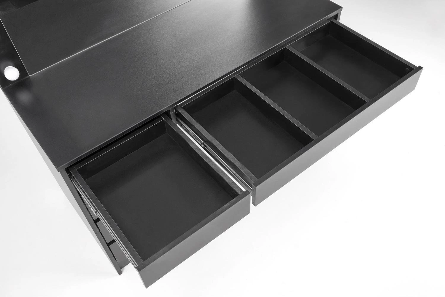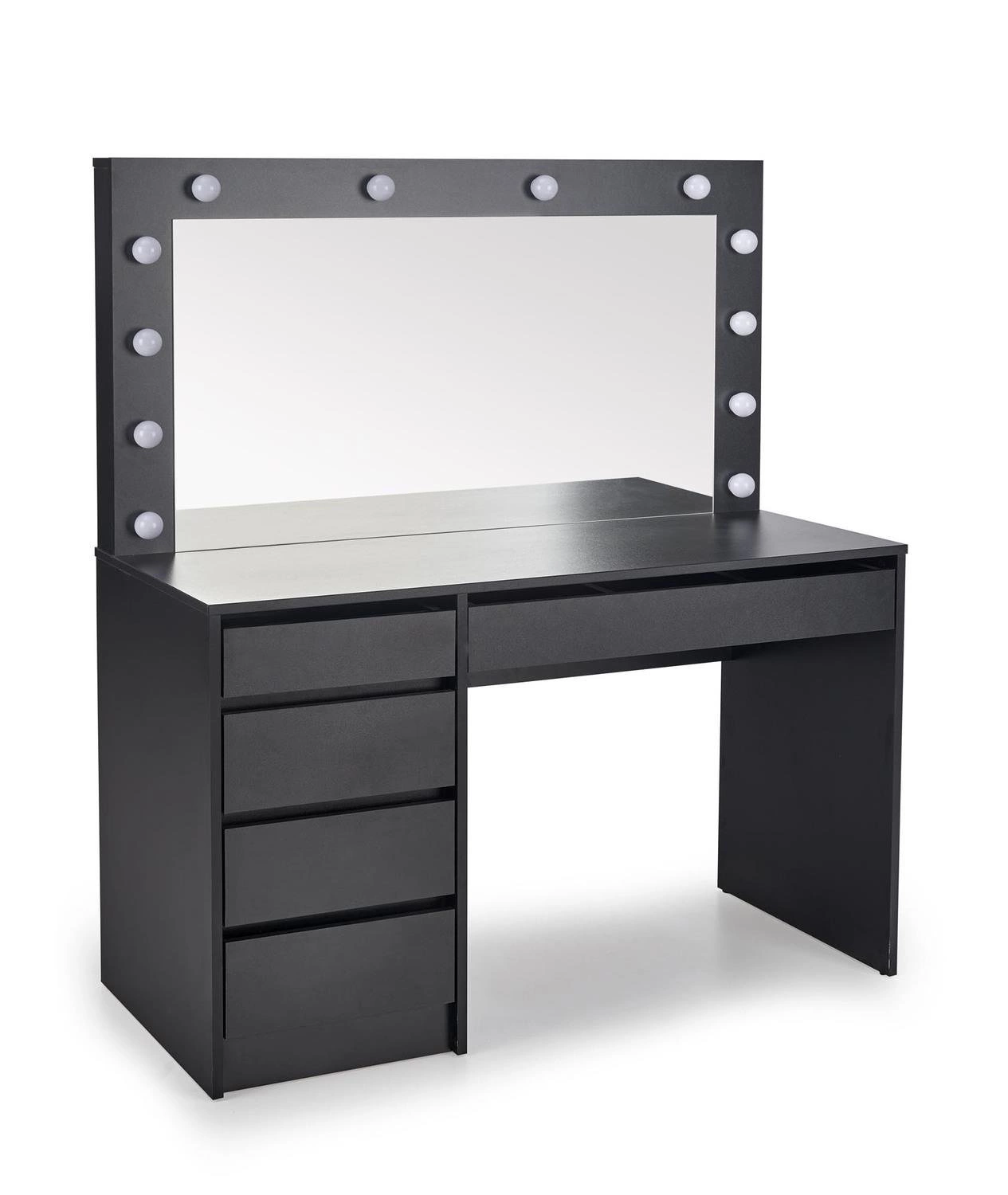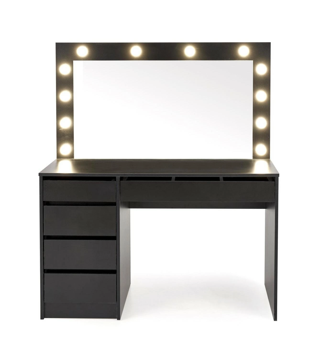Toaletní stolek s LED zrcadlem Sybilla XL černý moderní na líčení se zásuvkami do ložnice