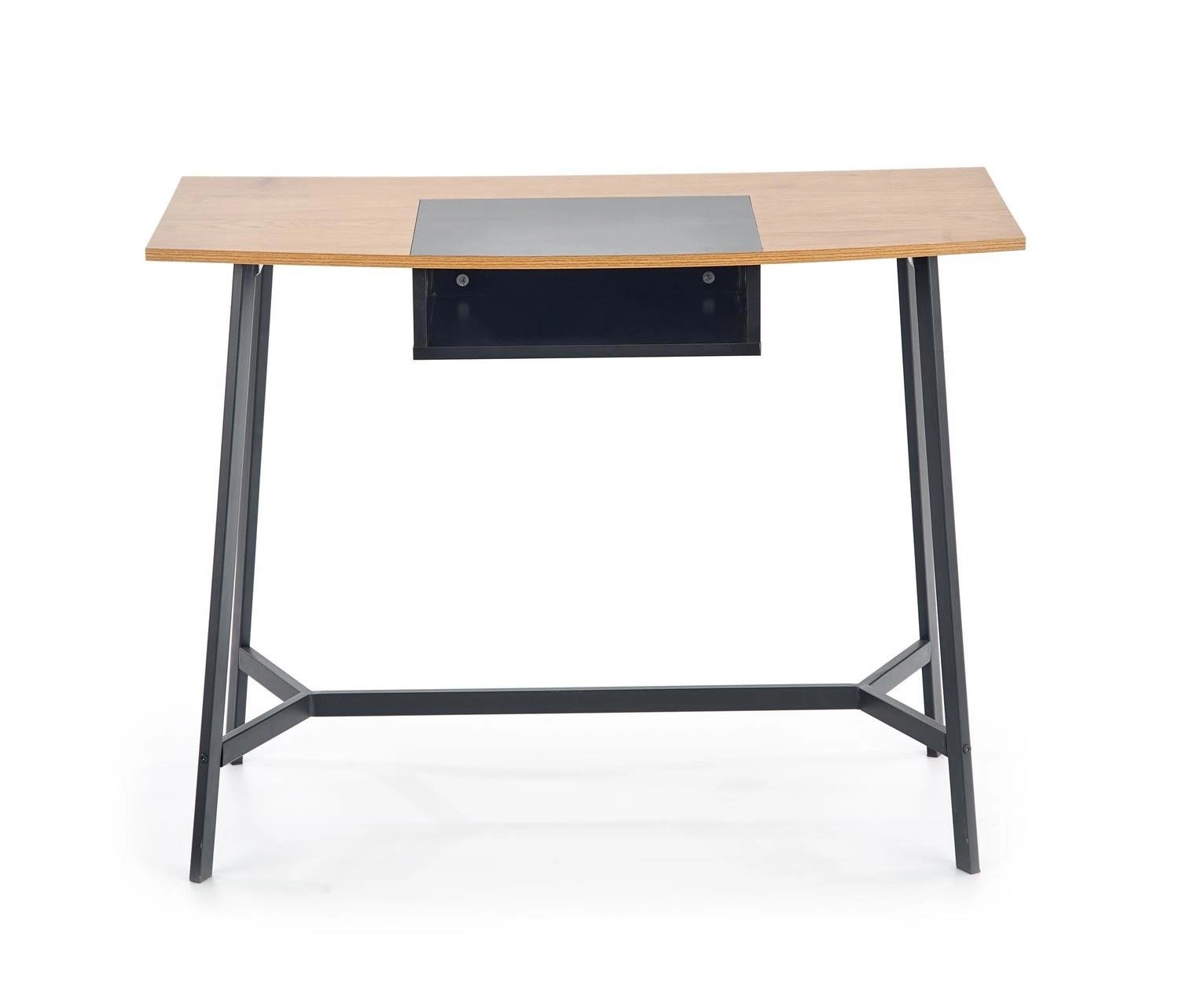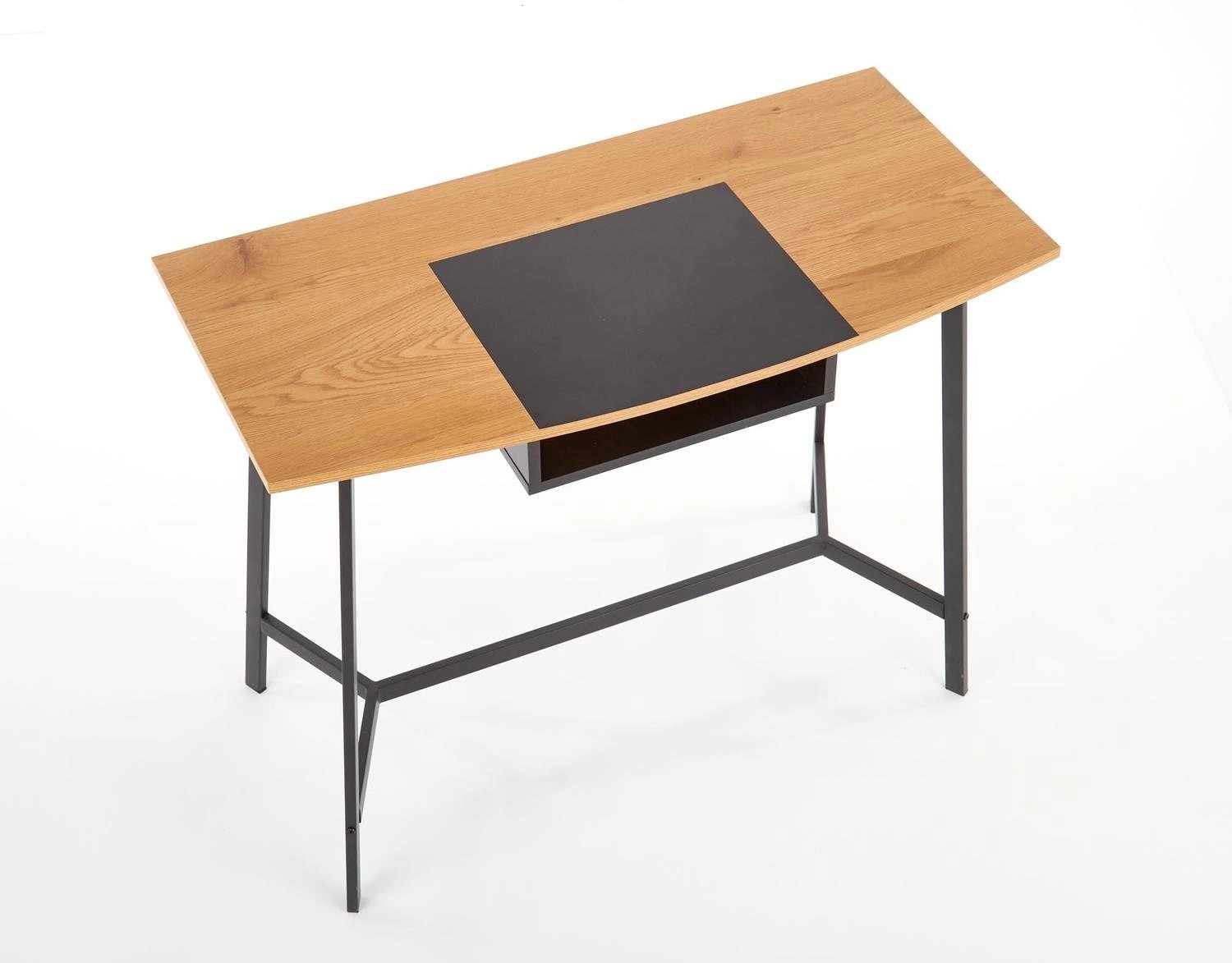 Psací stůl Inner od značky Intesi je moderní loftový nábytek o rozměrech 100×50×76 cm, který kombinuje přírodní desku v odstínu zlatého dubu s pevnou, černou ocelovou konstrukcí. Jeho obdélníková pracovní plocha a praktická police dělají ze stolu ideální volbu jako pracovní stůl, místo na studium nebo domácí kancelář. Díky vysokým nohám snadno udržíte pořádek pod nábytkem a elegantní polomatná úprava podtrhuje industriální charakter stolu.