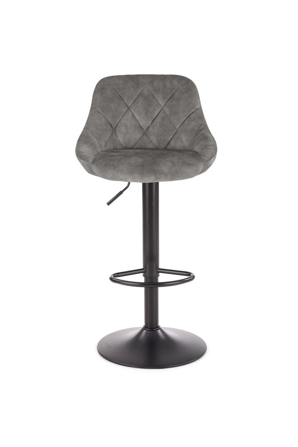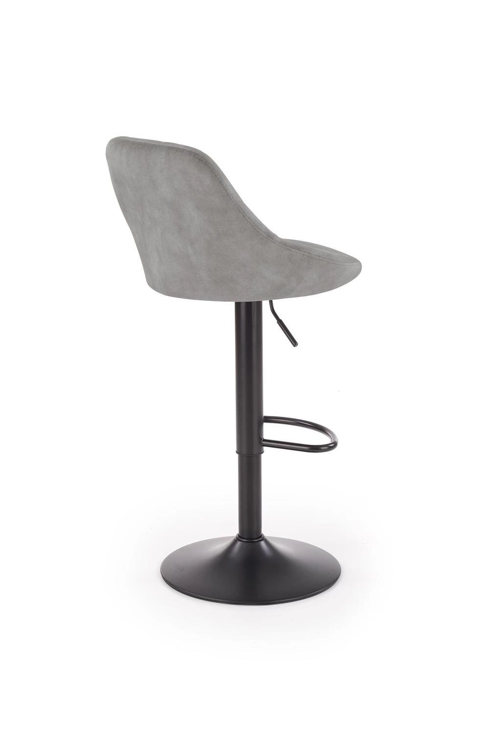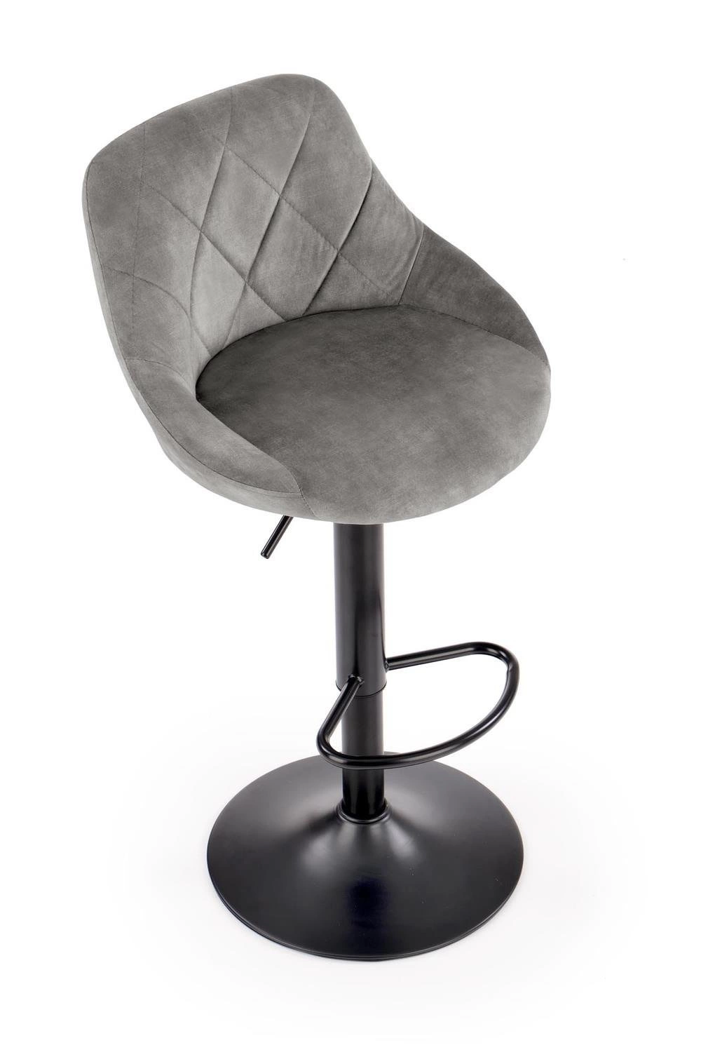 Šedá sametová barová židle Nang s opěrkou, otočná a výškově nastavitelná, moderní do kuchyně a k ostrůvku Intesi