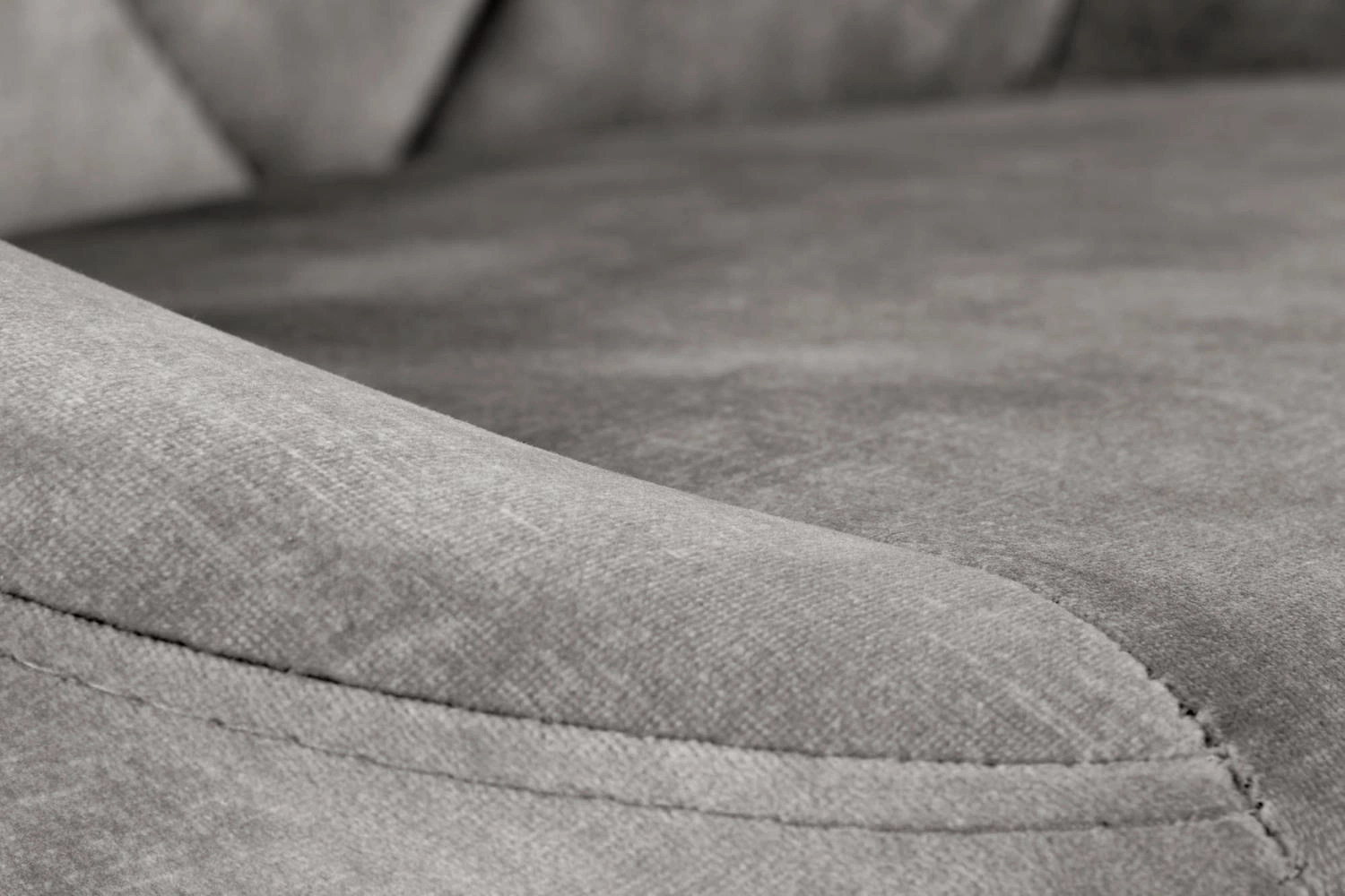 Sedák hokru Nang je čalouněný kvalitní sametovou látkou ve světle šedém odstínu, který perfektně odpovídá současným trendům interiérového designu. Samet nejen skvěle vypadá na denním světle, ale je také příjemný na dotek, což zvyšuje celkový komfort používání. Černá ocelová základna v polomatném provedení dodává židli moderní charakter, který se výborně hodí do kuchyně s ostrůvkem nebo do otevřené jídelny.