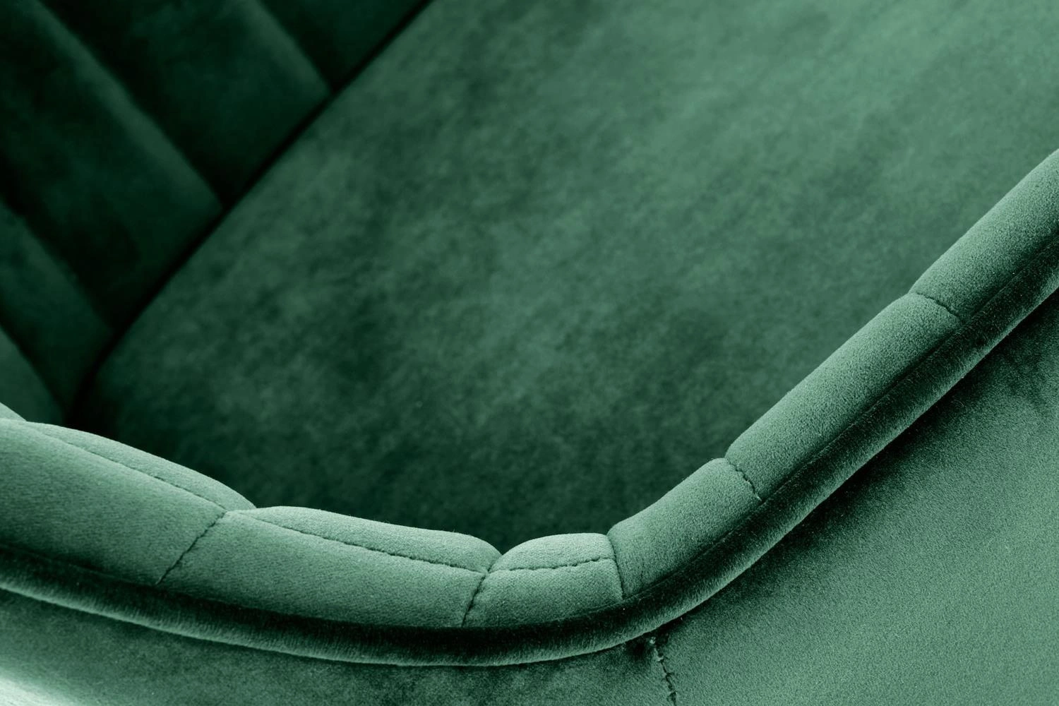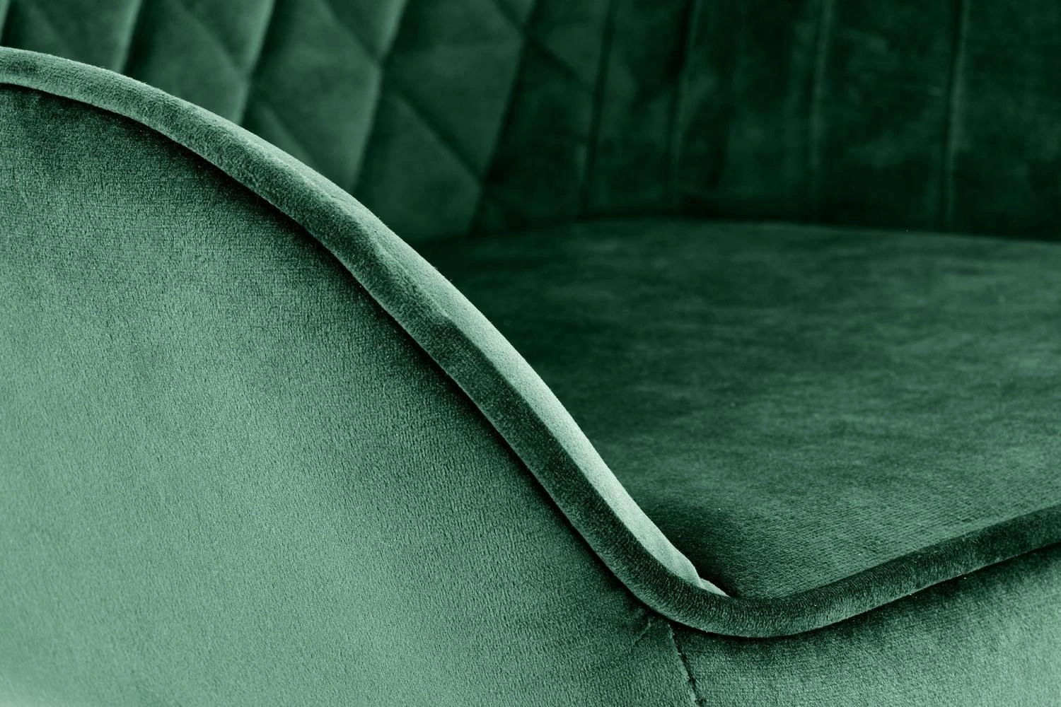 Hoker Roxie zelený sametový byl navržen s ohledem na interiéry, kde je důležitý komfort i designový vzhled. Měkká, sametová látka sedáku působí luxusně, je příjemná na dotek a zároveň se snadno udržuje v čistotě. Hluboká zelená dodává prostoru nádech elegance, zatímco černá kovová základna podtrhuje moderní charakter, který perfektně ladí s kuchyňskými ostrůvky, jídelnami i obývacími pokoji.