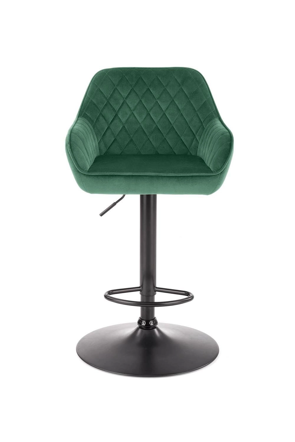 Barová židle Roxie zelená sametová otočná s nastavitelnou výškou a opěrkou do kuchyně Intesi