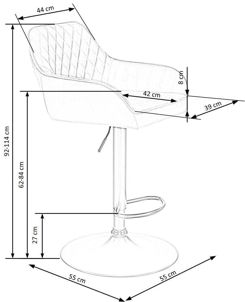 Praktická řešení dělají z hokru Roxie skvělou volbu pro každodenní použití. Nastavitelná výška sedáku v rozmezí 62–84 cm umožňuje pohodlné přizpůsobení téměř jakémukoli stolu či baru, zatímco otočný mechanismus zajišťuje snadné otáčení během rozhovorů nebo práce. Područky a tvarované opěradlo poskytují stabilní a pohodlnou oporu zad i při delším sezení.