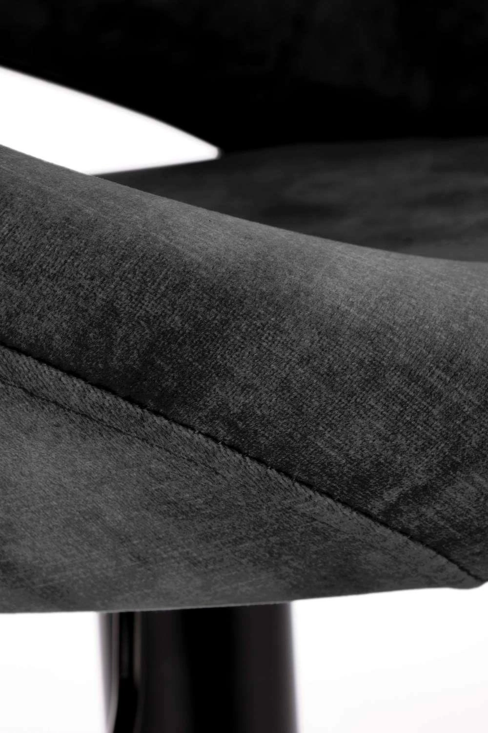 Hoker Rouse od značky Intesi je spojením moderní elegance a funkčnosti, navrženým pro náročné interiéry. Čalouněné černé sedadlo z měkké sametové látky, pohodlná opěrka a otočná, výškově nastavitelná kovová základna dělají z tohoto barového stoličku ideální volbu jak k kuchyňskému ostrůvku, tak k baru v jídelně nebo v obývacím pokoji. Výšku sedadla lze plynule nastavit v rozmezí 62 až 84 cm, což zaručuje komfortní používání bez ohledu na výšku pracovní desky.