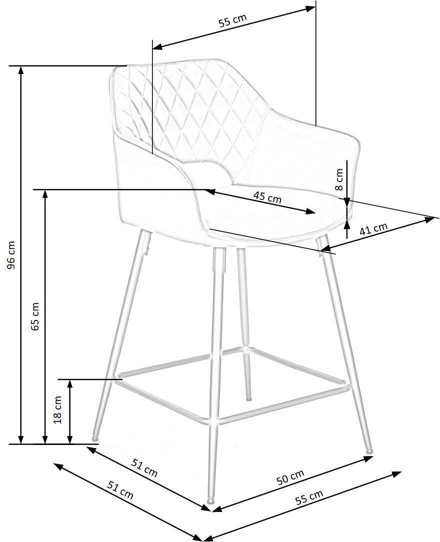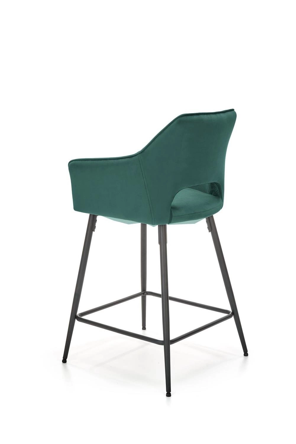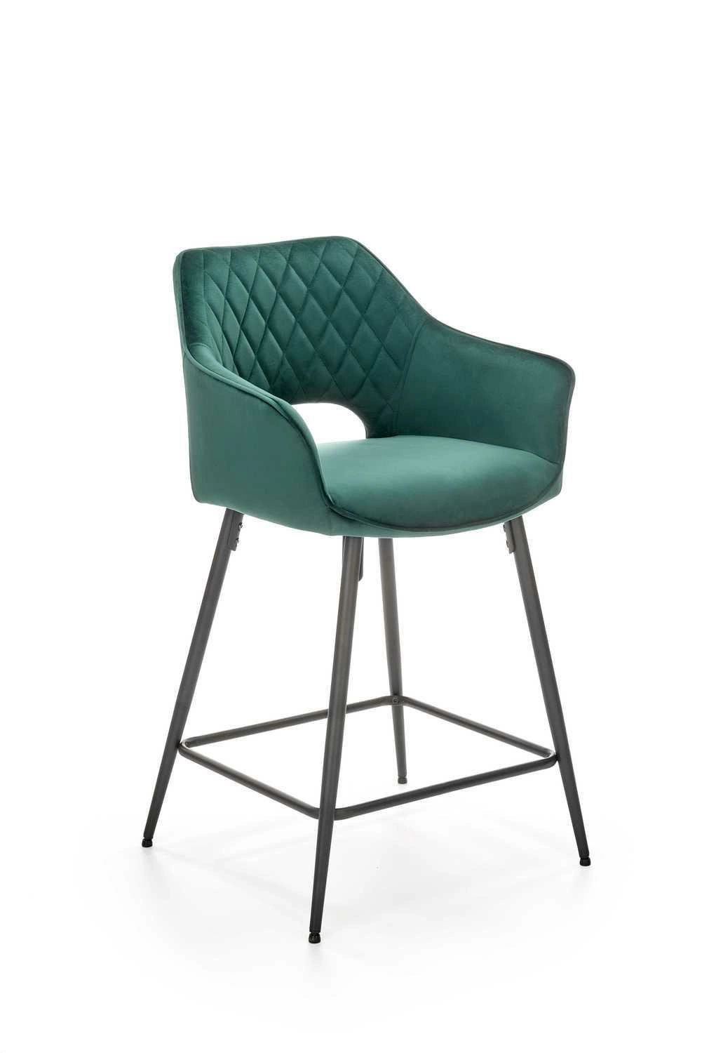 Moderní židle barová s vytříbeným vzhledem Představujeme vám židle barová Ruban, který vyniká nejen moderním stylem, ale také pohodlím a elegancí. Jeho sedák je prošívaný a čalouněný sametovou látkou příjemnou na dotek, která zajišťuje pohodlí při používání. Čtyři ocelové nohy s práškovým nástřikem v černé barvě zaručují stabilitu a odolnost nábytku. Styl nábytku je moderní, díky čemuž dokonale zapadne do různých interiérových uspořádání. Nábytek je vyroben z odolných materiálů a zaručuje dlouhou životnost. Židle barová v elegantní zelené barvě je univerzální, aby co nejlépe vyhovoval vašim preferencím a interiéru místnosti. Je ideální do prostor, jako je kuchyně, jídelna nebo obývací pokoj, kterým dodá na půvabu. Díky područkám a krátkému opěradlu poskytuje židle barová Ruban pohodlí a dostatečnou oporu těla. Jeho tvarovaný sedák se postará o vaši páteř, zatímco díky měkkému a pohodlnému čalounění bude každá chvíle strávená na tomto židle barováze nezapomenutelná. Připravte se na moudrou volbu! Židle barová Ruban je kombinací moderního stylu, pohodlí a elegance Sametové čalounění poskytuje příjemný dotykový zážitek Čtyři ocelové nohy v černé barvě zaručují stabilitu a odolnost kusu nábytku