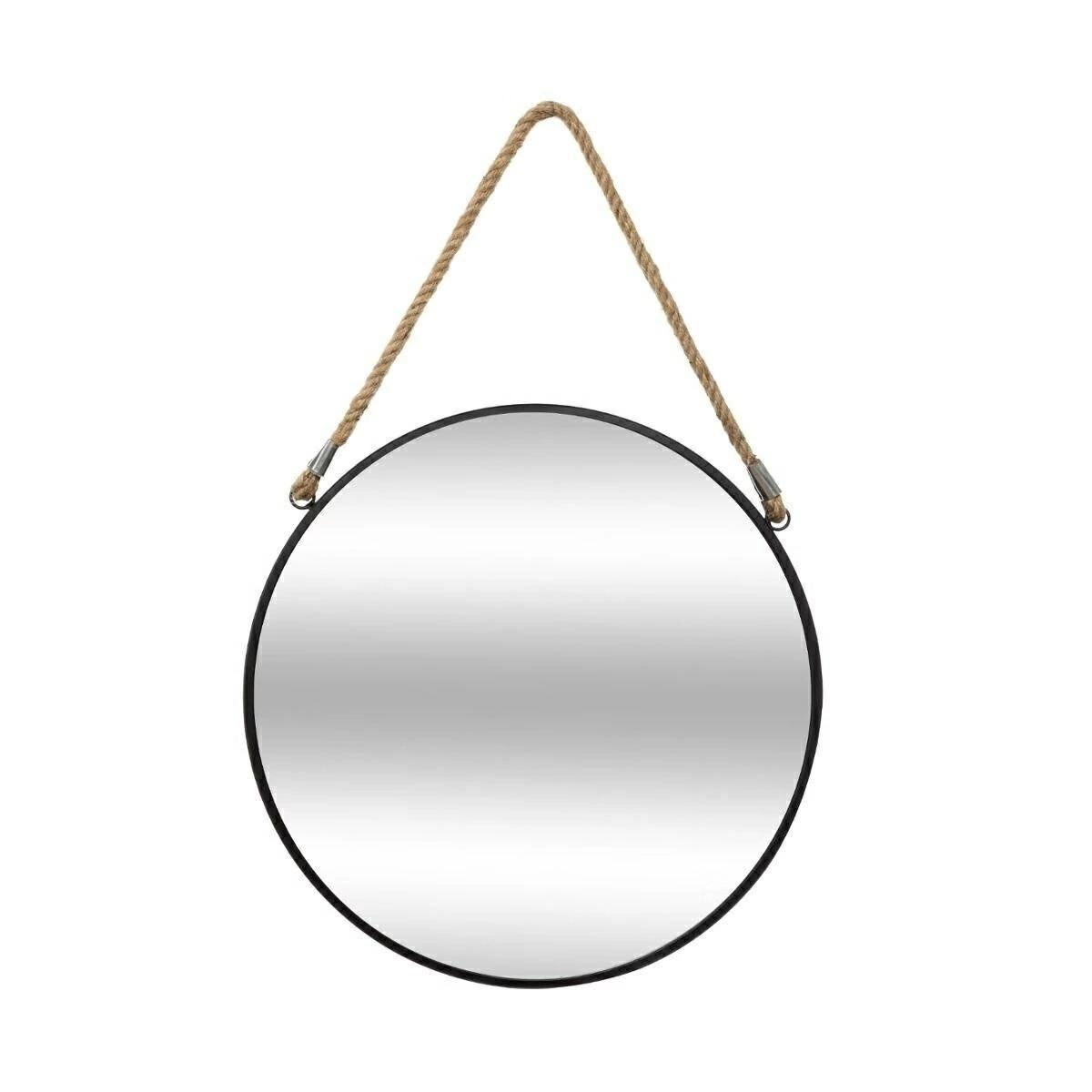 Kulaté zrcadlo Eden 38 cm na pásku do předsíně loftové v černém rámu Atmosphera