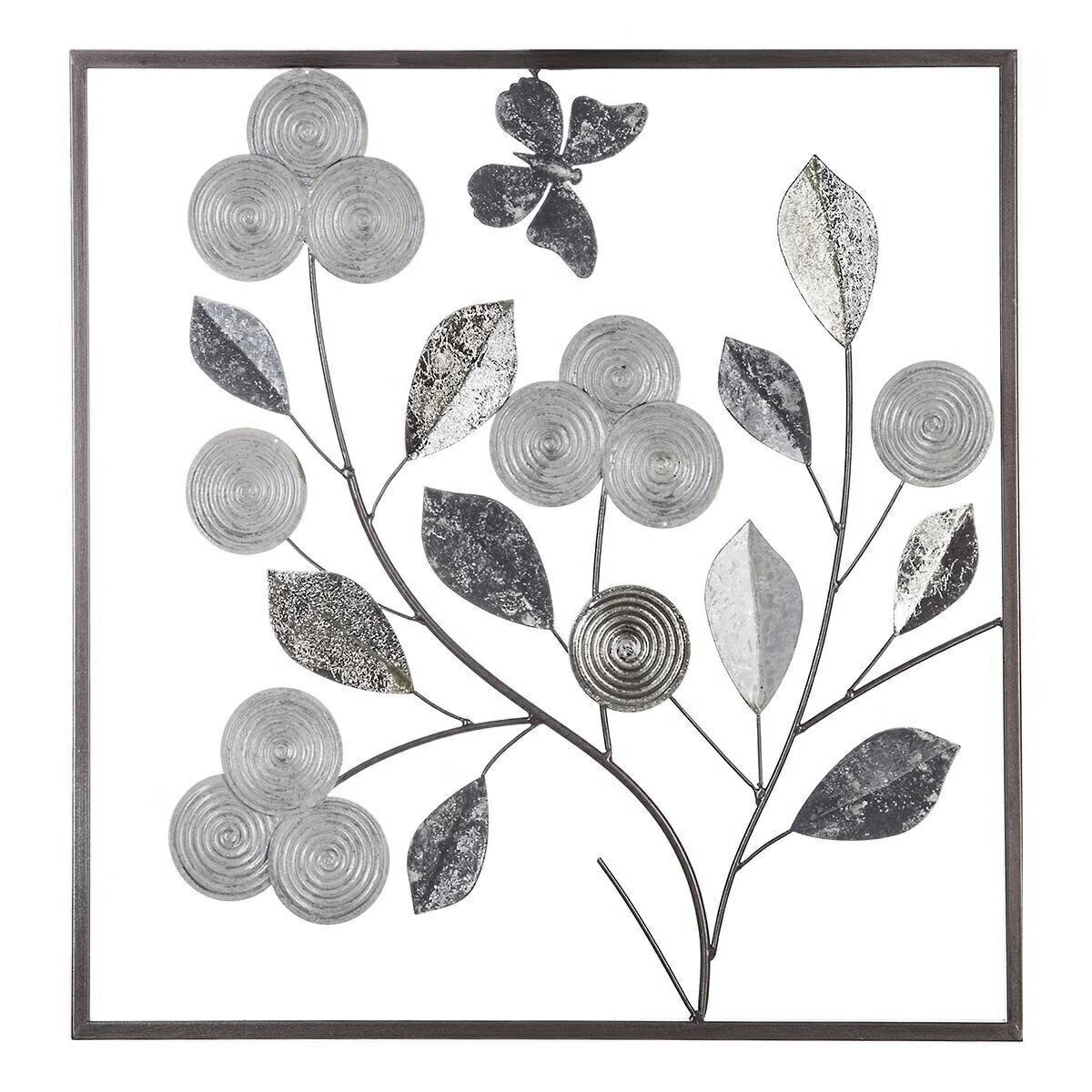 Florale stříbrná kovová nástěnná dekorace do obýváku loftová dekorace na zeď 50x50 cm Atmosphera