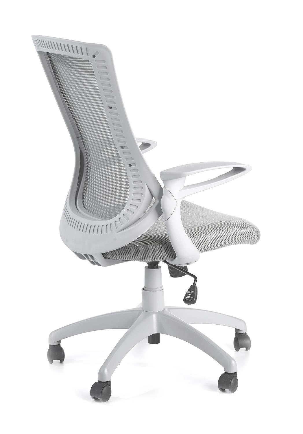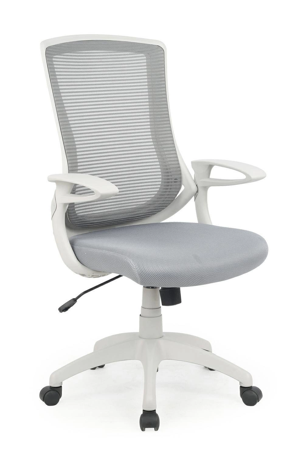 Židle Gorial značky Intesi skvěle zapadne do zařízení moderních kancelářských prostor i domácích pracoven. Světle šedá látka a polomatná povrchová úprava dodávají interiéru lehkost a svěžest, zatímco kontrastní bílé a černé prvky podtrhují její designový charakter. Stabilní základna z odolného plastu zaručuje dlouhou životnost a snadné přesouvání – kolečka umožňují plynulý pohyb židle bez poškození podlahy.