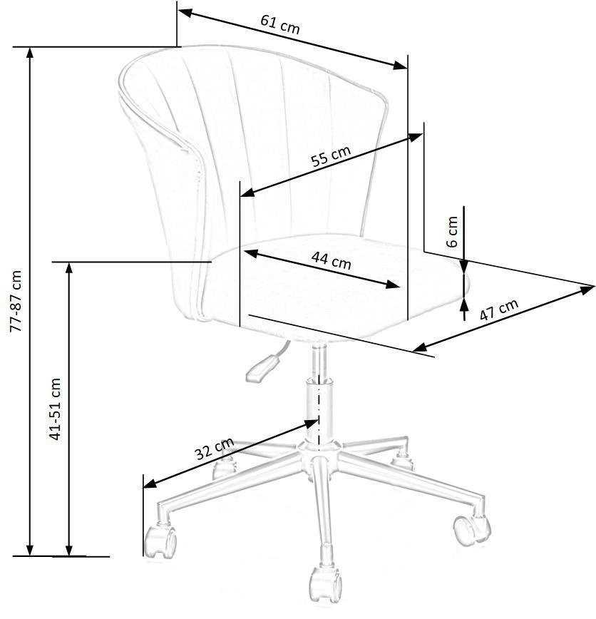 Židle Cossio byla navržena s důrazem na maximální pohodlí při dlouhých hodinách u počítače. Tvarované opěradlo a měkký sedák ze sametové látky poskytují vysoký komfort, ať už pracujete, studujete nebo trávíte čas hraním u stolu. Díky nastavitelnému sedadlu se tato kancelářská židle skvěle hodí jak do domácí pracovny, tak jako pohodlná židle na studium pro děti nebo teenagery.