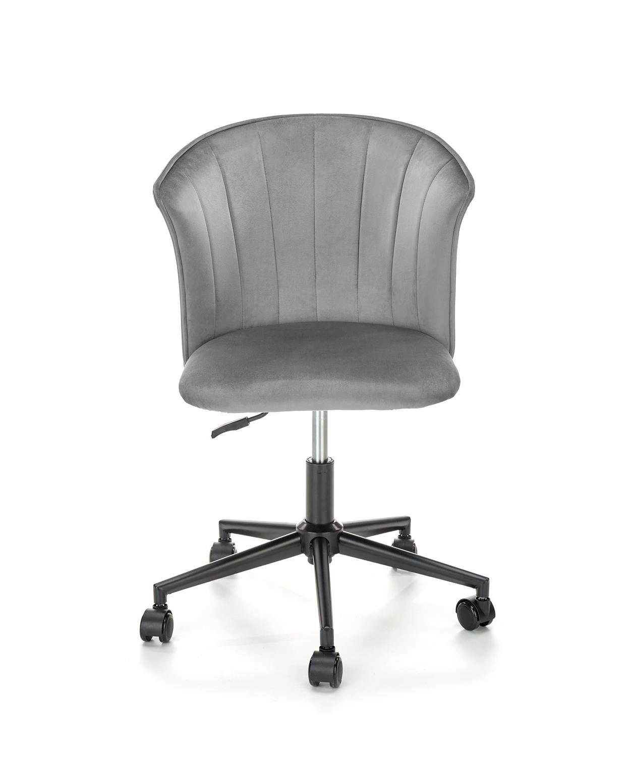 Ergonomická kancelářská židle Cossio od značky Intesi je moderní otočná židle čalouněná měkkou šedou sametovou látkou, která se skvěle hodí jak do kanceláře, tak do studentského pokoje. Kompaktní rozměry – šířka 55 cm a hloubka 61 cm – a nastavitelná výška sedáku od 41 do 51 cm umožňují pohodlné přizpůsobení ke stolu i individuálním potřebám uživatele. Stabilní pětiramenná základna z kovu v černém lesku zajišťuje spolehlivost a snadné přesouvání díky kolečkům.