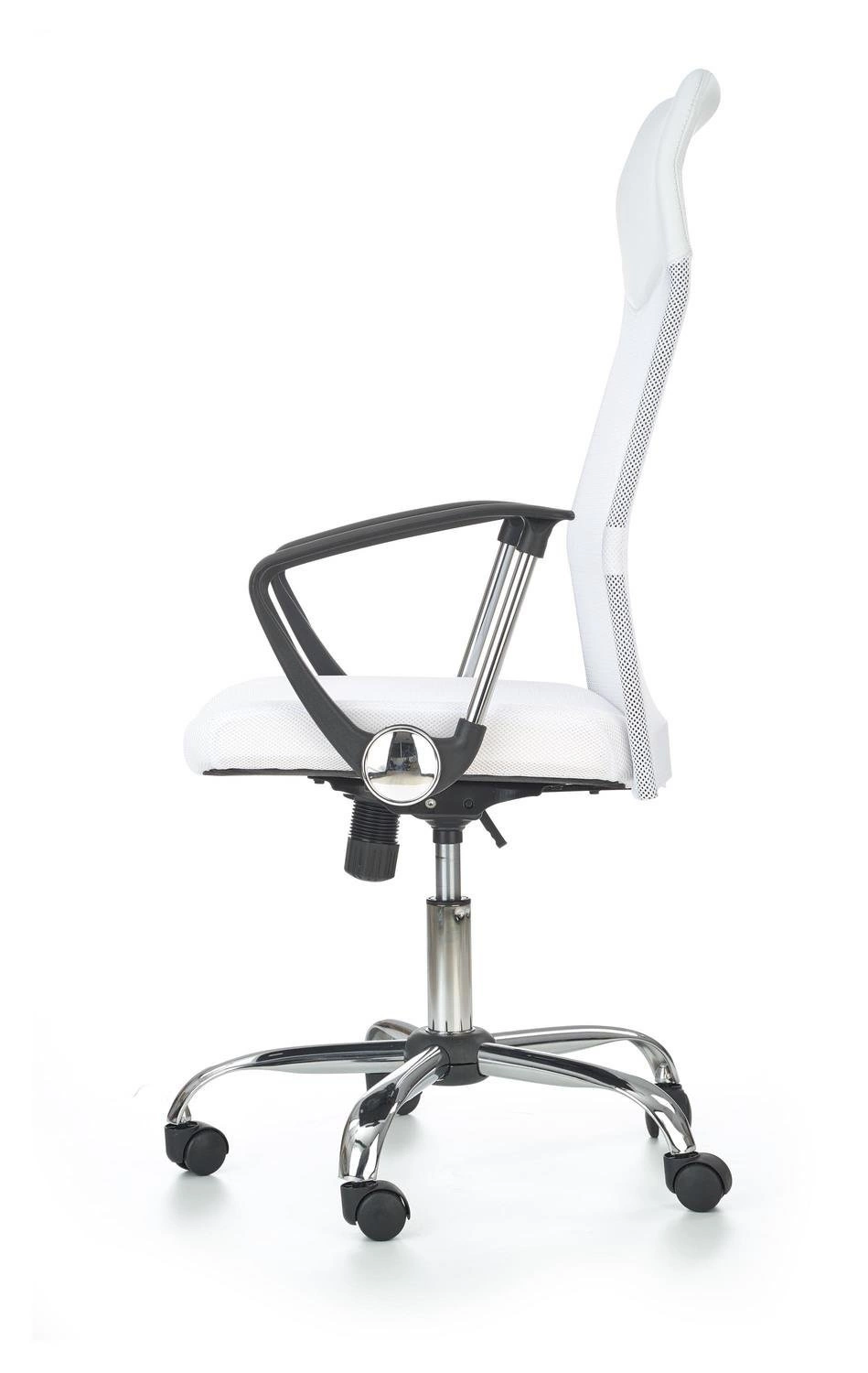 Model Spiner byl navržen pro ty, kteří si cení vysokého komfortu při dlouhodobém sezení u práce. Bílé kožené čalounění dodává židli moderní a prestižní vzhled, který podtrhne charakter každého kancelářského prostoru. Opěradlo a sedák jsou tvarovány tak, aby poskytovaly správnou oporu zad a pohodlí i při mnohahodinové práci u počítače. Kovová základna se stříbrným povrchem zaručuje stabilitu a dlouhou životnost konstrukce.