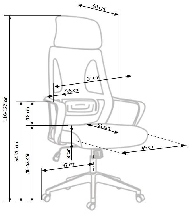 - Široké možnosti nastavení (výška sedáku od 46 do 52 cm, celková výška od 116 do 122 cm) – přizpůsobíte snadno své postavě i výšce stolu.