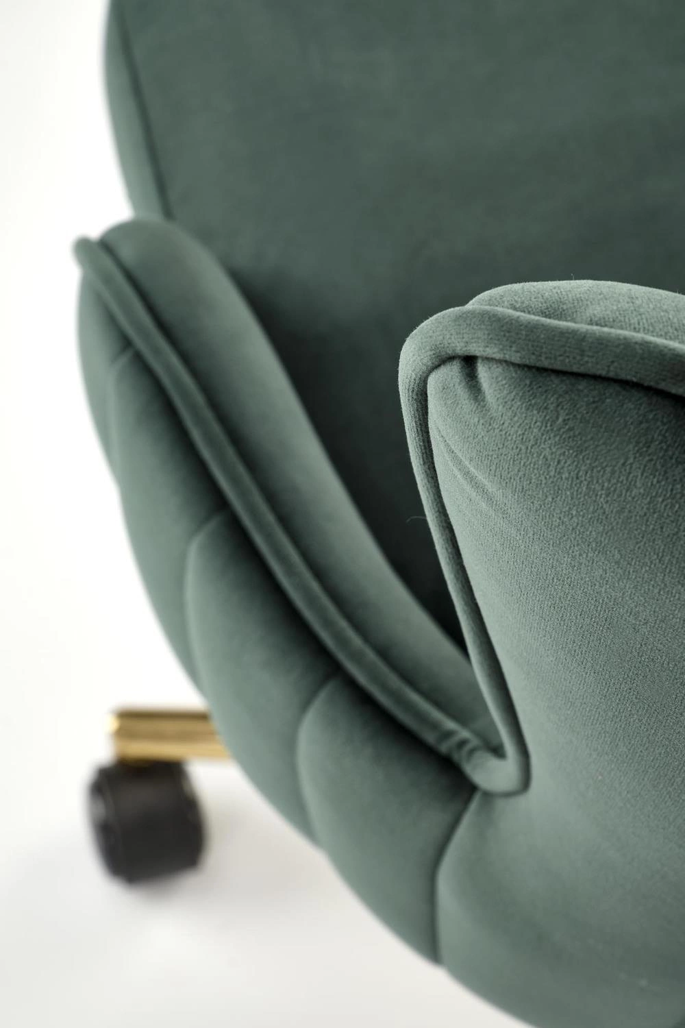 Kancelářské křeslo Tomil zelené - Elegance a klasický šarm pro vaši kancelář | Intesi Kancelářské křeslo Tomil je kombinací půvabu a klasického stylu, který dodá vaší kanceláři eleganci. Podstavec z kovu zaručuje pevnost a odolnost. Nenastavitelné područky poskytují pohodlí při sezení a maximální nosnost 100 kg umožňuje, aby křeslo používala řada uživatelů. Křeslo Tomil má čalounění ze zelené sametové látky, které mu dodává jedinečný půvab a eleganci. Nastavitelná výška sedáku (40 - 48 cm) umožňuje přizpůsobit křeslo individuálním potřebám, což umožňuje pohodlné a komfortní sezení. Kompaktní rozměry (šířka 55 cm, hloubka 55 cm) a nízká hmotnost 9,5 kg usnadňují přenášení křesla a jeho přizpůsobení různým prostorům v kanceláři. Kancelářské křeslo Tomil je nejen kusem pracovního nábytku, ale také elegantním doplňkem, který podtrhne jedinečný charakter vaší kanceláře a vytvoří atmosféru stylu a pohodlí během dlouhých hodin práce. Stojí za to si ho zapamatovat! Kancelářské křeslo Tomil - kombinace glamour a klasického stylu pro elegantní vzhled vaší kanceláře. Pevná kovová základna pro dlouhou životnost a stabilitu. Nenastavitelné područky a maximální nosnost 100 kg pro oporu a pohodlí při dlouhodobém používání. Čalounění ze sametové látky dodává židli jedinečný šarm.