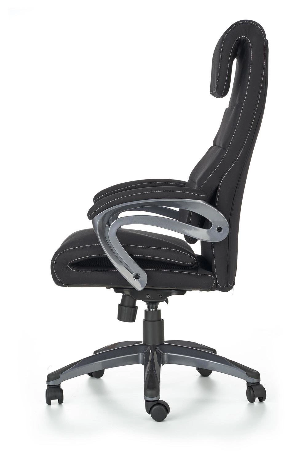 Černá kancelářská židle Yoaf se harmonicky začlení jak do minimalistických, tak i výraznějších pracovních prostor nebo domácí pracovny. Elegantní černé čalounění v kombinaci s matně šedou pětiramennou základnou tvoří stylový, sjednocený celek. Díky modernímu designu židle podtrhne profesionální charakter pracovního místa a zároveň poslouží jako stylová kancelářská židle pro studenty ke studiu či zábavě u počítače.