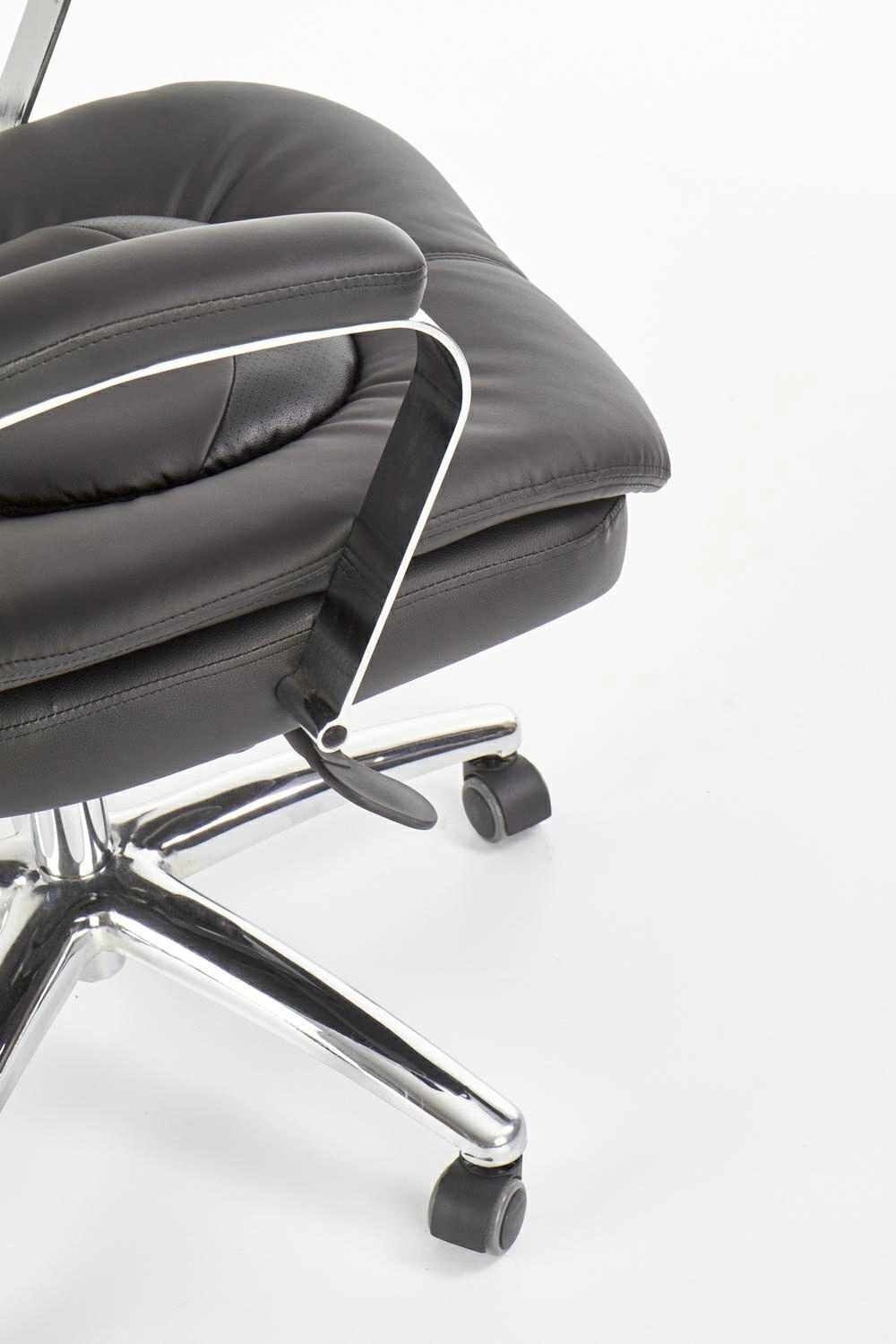Čalounění z černé eko kůže s elegantním leskem dodává židli exkluzivní vzhled, který dokonale zapadne do moderních kanceláří i pracovních prostorů. Kovová základna v chromované a černé barvě zajišťuje nejen stabilitu, ale také dlouhou životnost při každodenním používání. Otočná židle Comfy je navržena pro uživatele různých postav a unese zatížení až 150 kg.